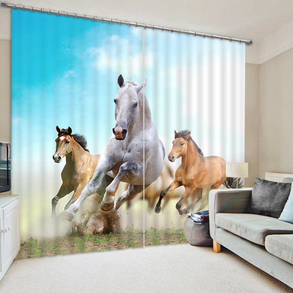 3D Speed Horses Printed Animal Style Decoration Custom Curtain for Living Room