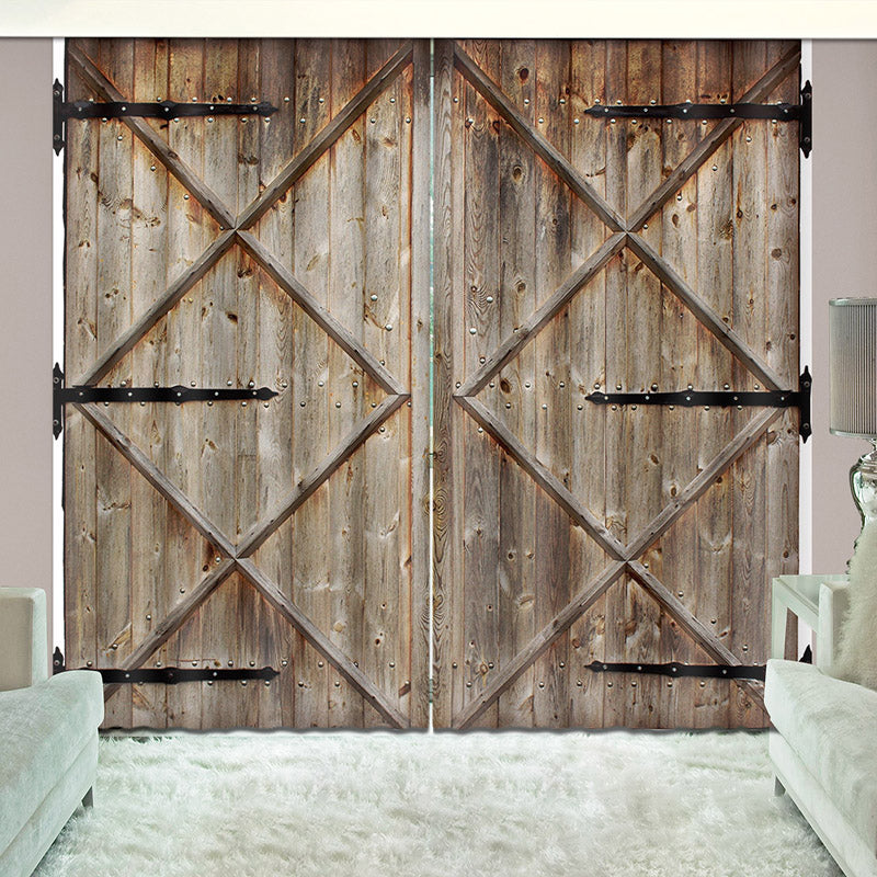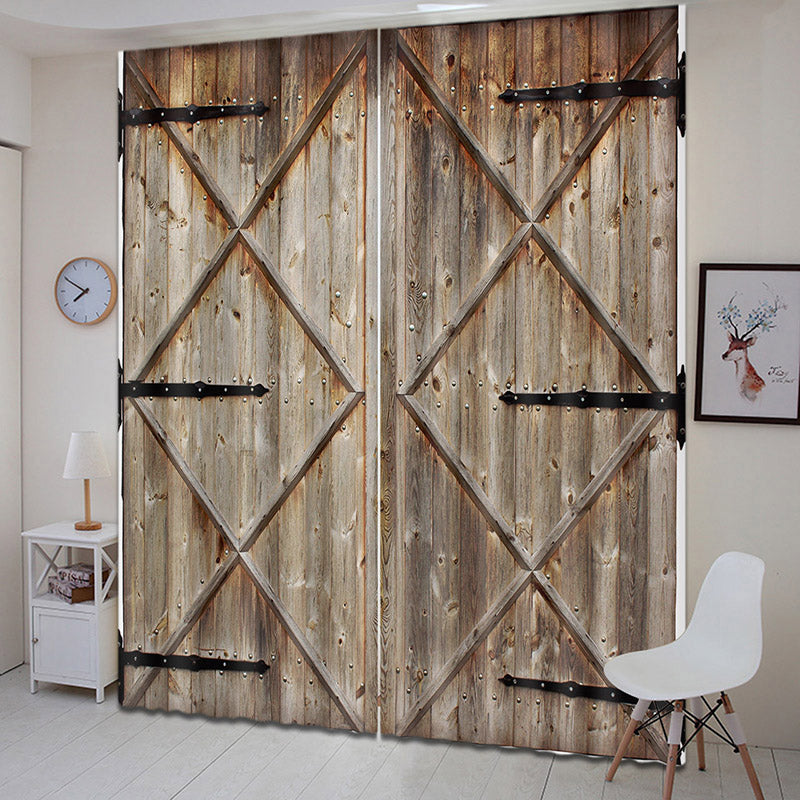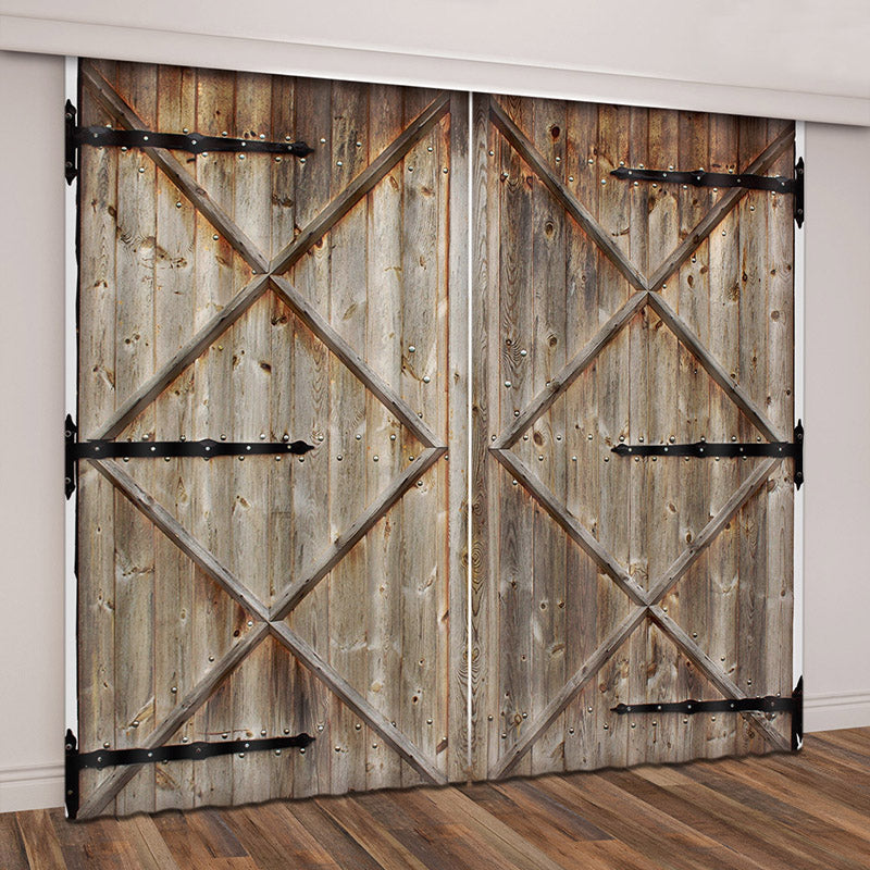 3D Vintage House Old Wooden Barn Door Printed Curtains