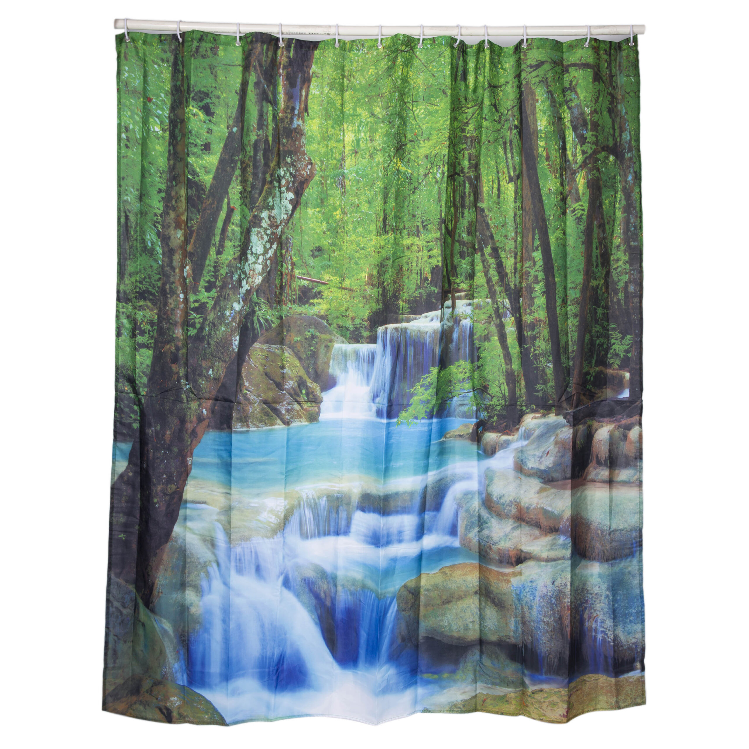 3D Waterfall and Hidden Forests Printed Polyester Shower Curtain