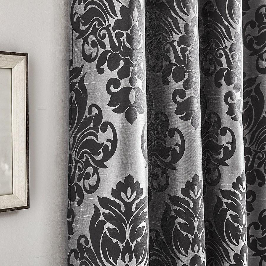 Black Jacquard Blackout Curtain Paris Paisley Decorative Print Damask Pattern Thermal Insulated Blackout Energy SavingsRoom Darkening Soundproof Grommet Window Curtain Panels for Bedroom Set of 2