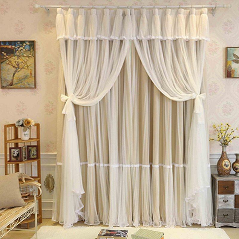 Blackout and Decoration Blending Princess Style Romantic Beige Double Pinch Room Curtain Set