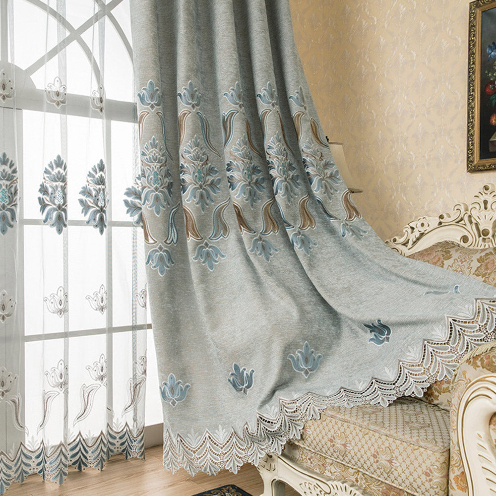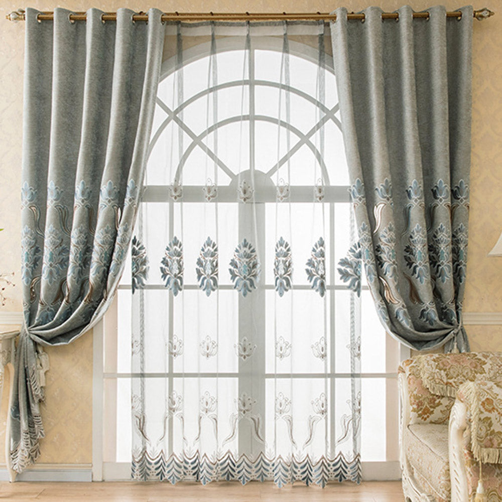 Blackout Curtains Thick Chenille Jacquard Sheer Shading Curtains for Living Room Bedroom Custom Window Curtains 2 Panels Drapes Decoration
