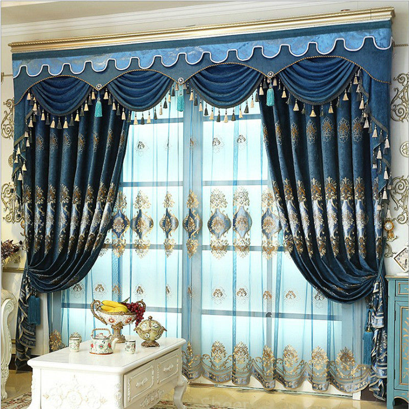 Blue Embroidery Sheer Curtain Noble and Elegant Tulle for Living Room Bedroom Window Decor 2 Panels Drapes Breathable Voile in Stock
