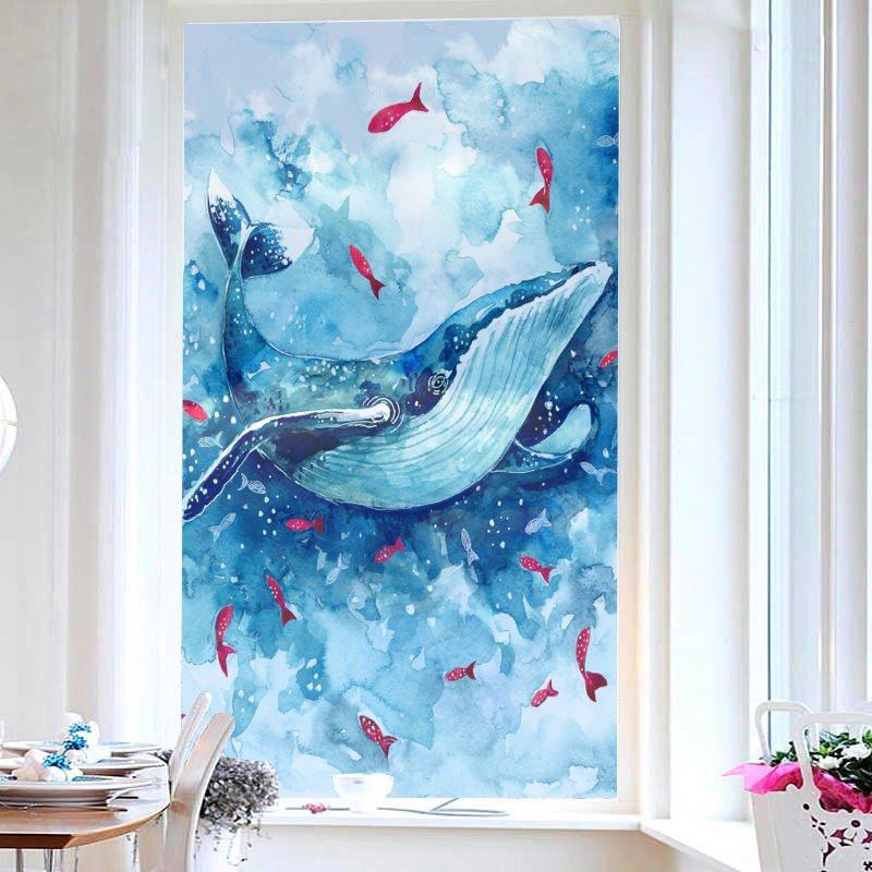Cartoon Blue Whale Painted Window Film No-glue Glass Static Sticker