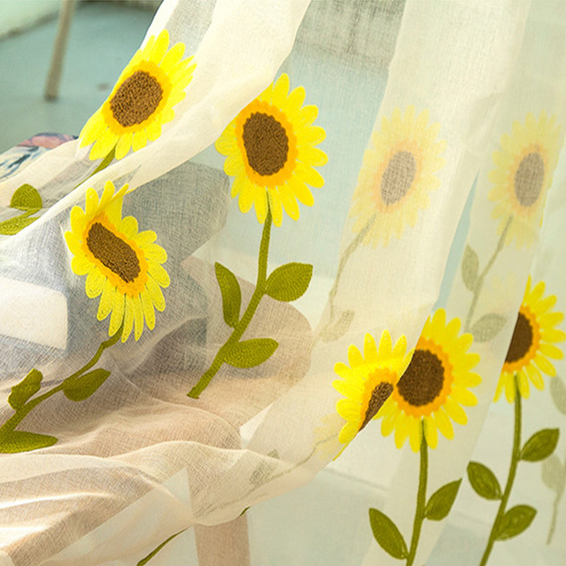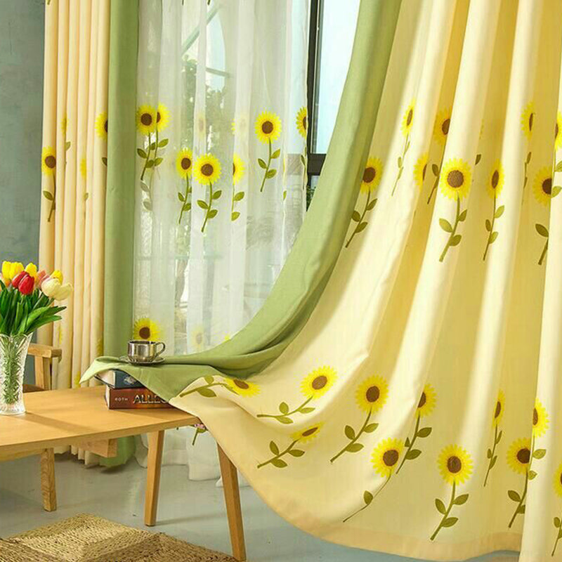Decoration and Blackout Blooming Sunflowers Natural and Modern Style Polyester Shading Curtain Sheer Curtain