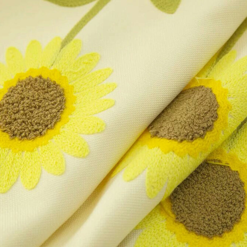 Decoration Polyester Embroidery Bright Sunflowers Sweet Style Sheer Lining Curtain Set