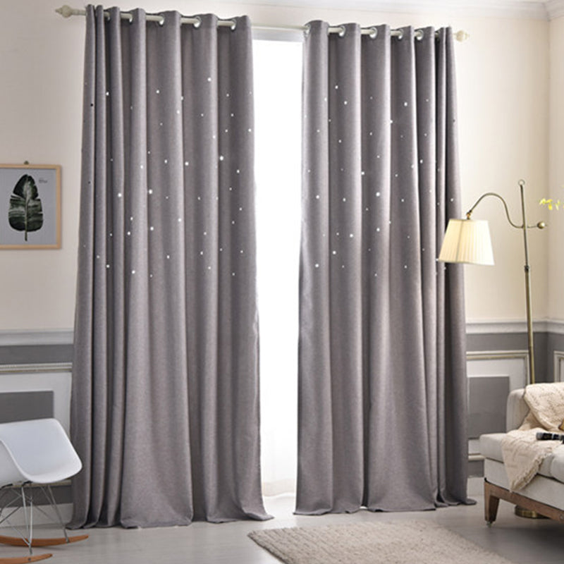 Decorative and Blackout Thick Polyester Hollowing Stars Korean Style 2 Panels Curtain