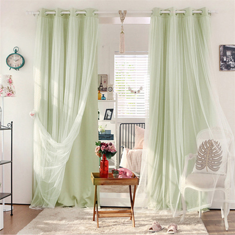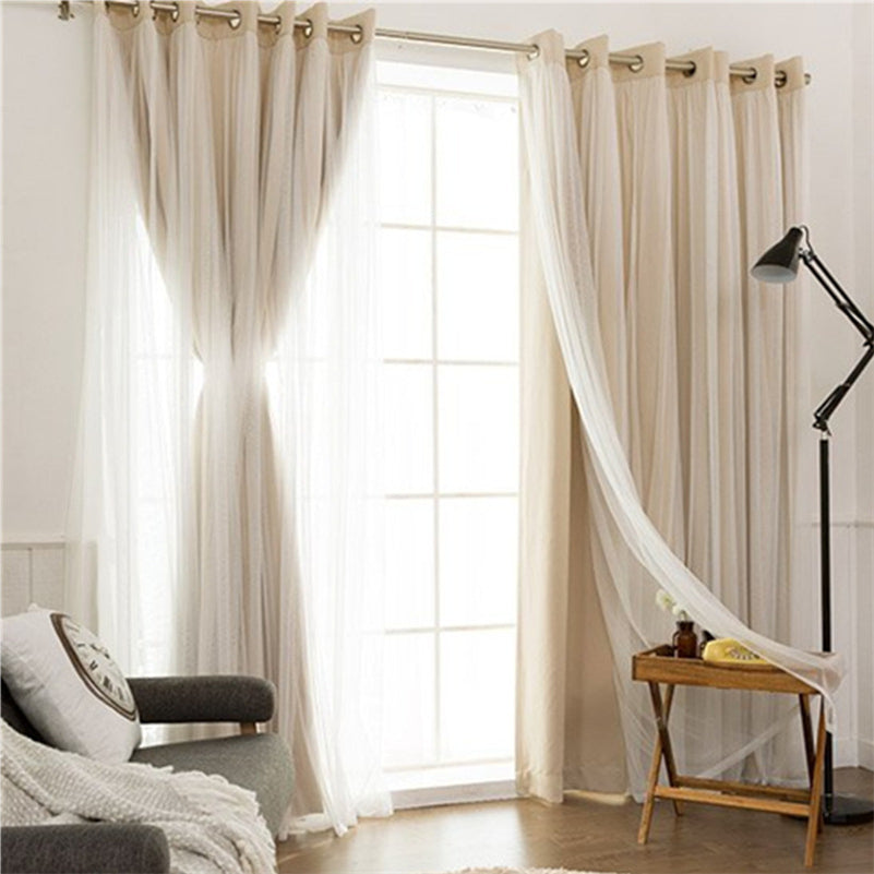 Double Layer Blackout Eyelet Curtains Lace Solid Window Curtain Sets for Living Room Bedroom Decoration 2 Panels High Shading Rate