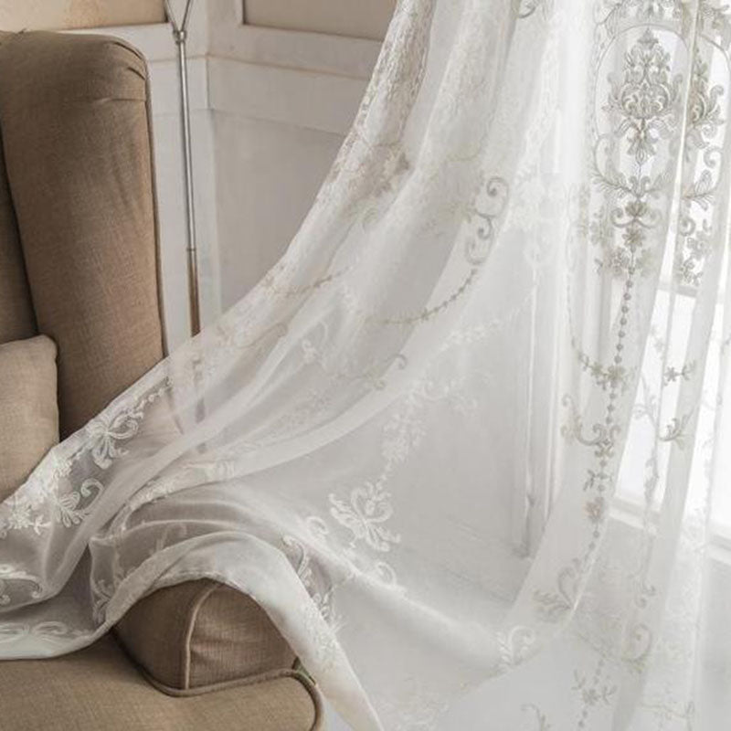Elegant and Noble Fancy White Embroidery Custom Sheer Curtains for Living Room Bedroom in Stock