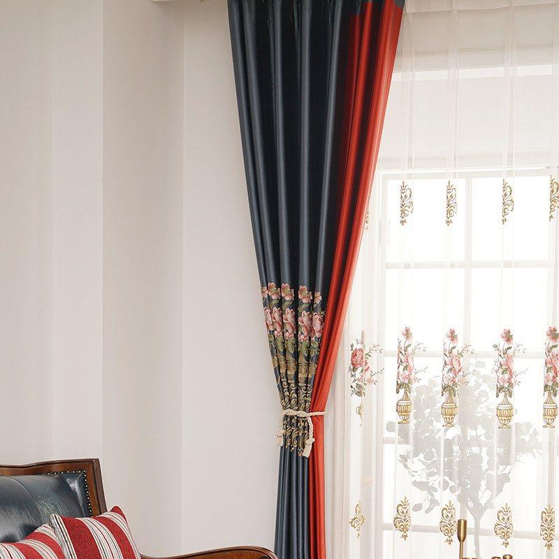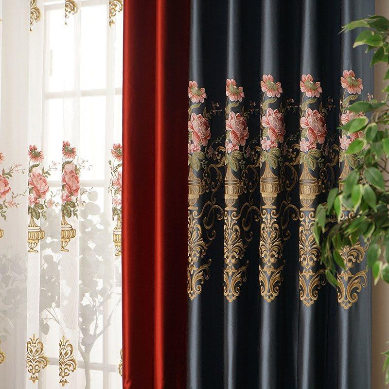 Elegant Embroidery Blackout Curtains Blocks Light Prevents UV Ray for Bedroom Living Room 2 Panels Window Curtains