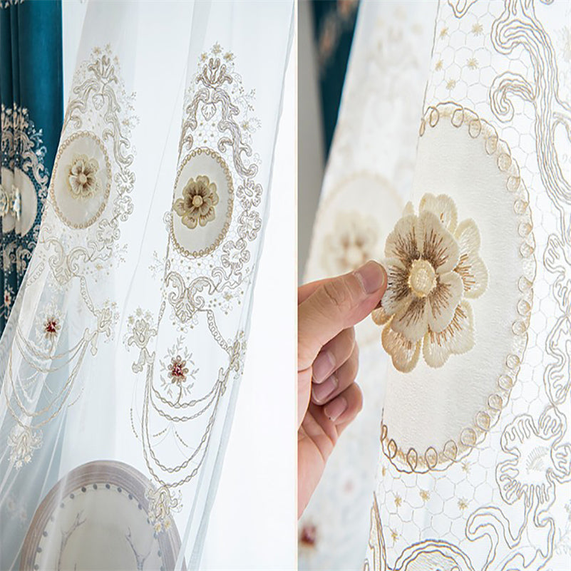 Elegant Embroidery Sheer Curtain Blackout Noble Tulle for Living Room Bedroom Window Decor Custom 2 Panels Drapes Breathable Voile