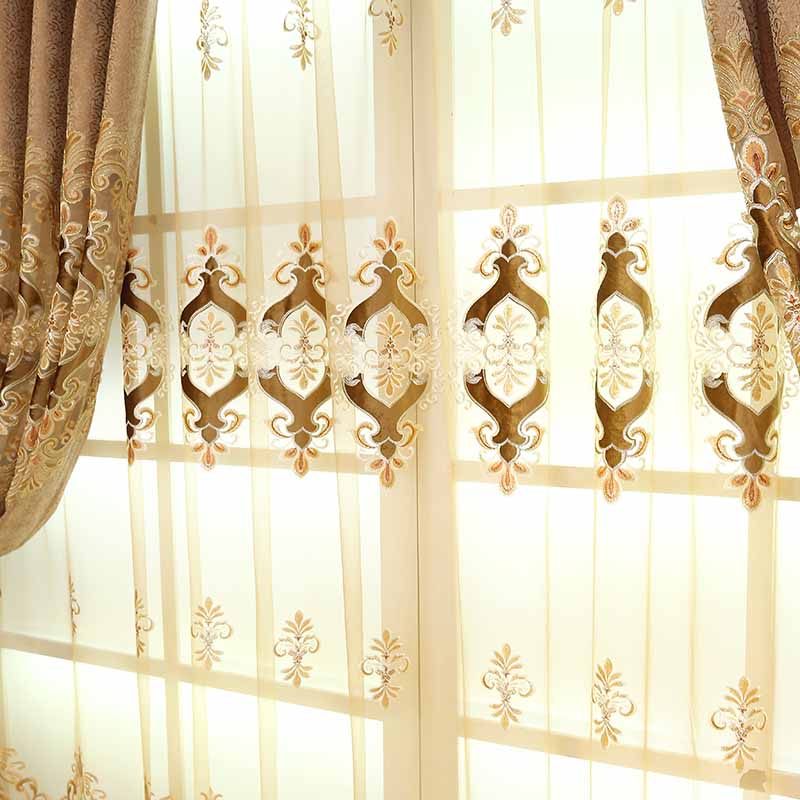 Elegant Embroidery Sheer Curtain Coffee Tulle for Living Room Bedroom Window Decoration Custom 2 Panels Drapes Breathable Voile in Stock