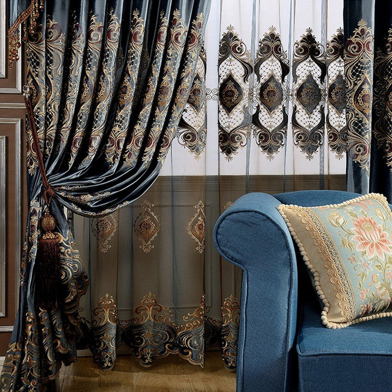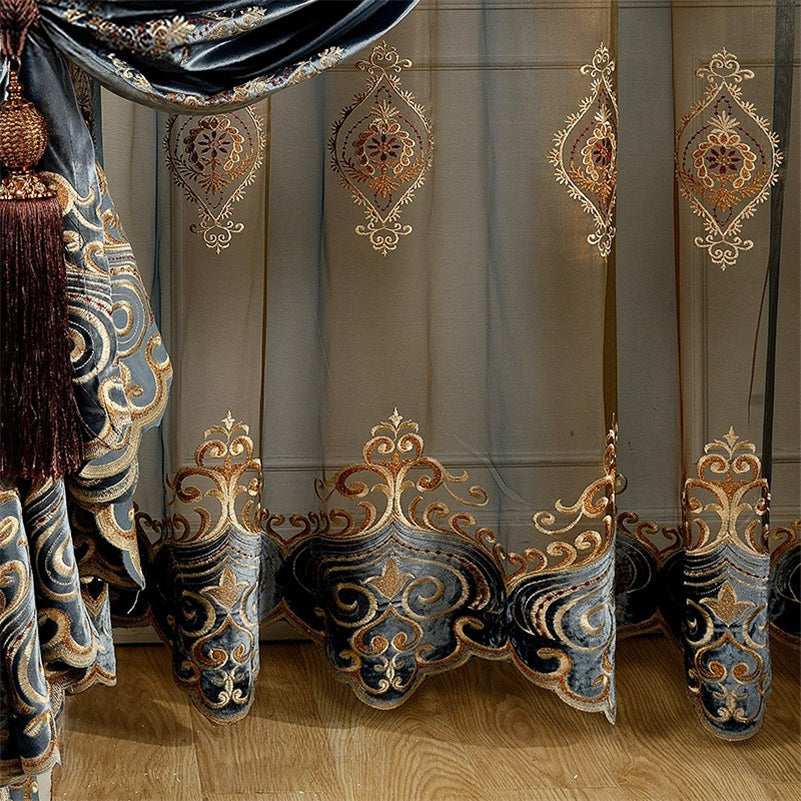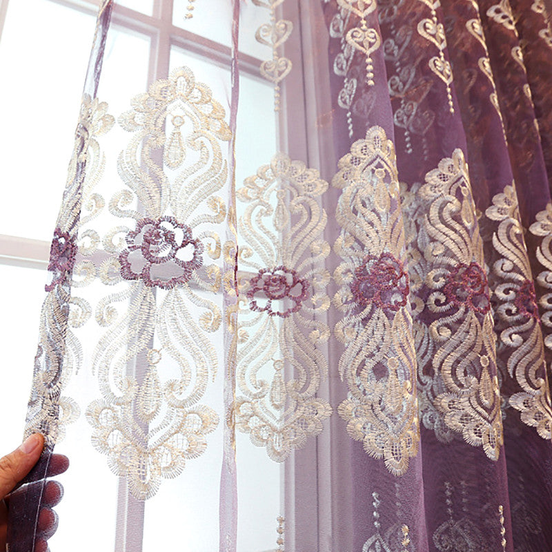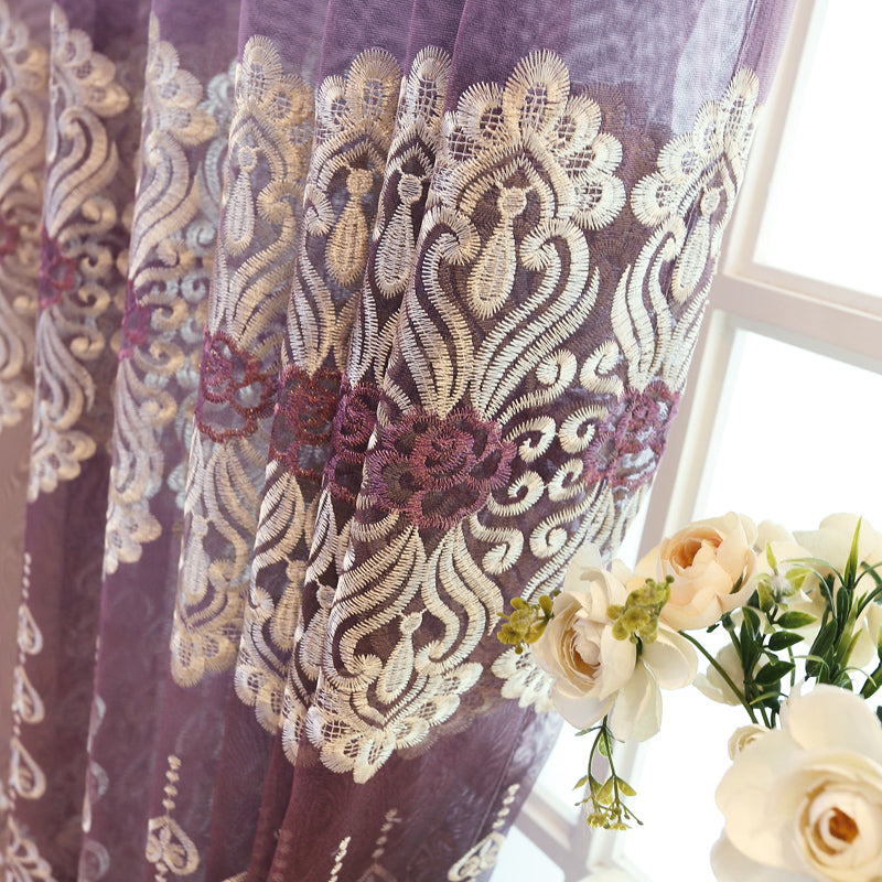Embroidery Voile Curtains Window Sheer Curtains Noble and Elegant for Living Room Bedroom Decoration Custom 2 Panels Drapes Breathable