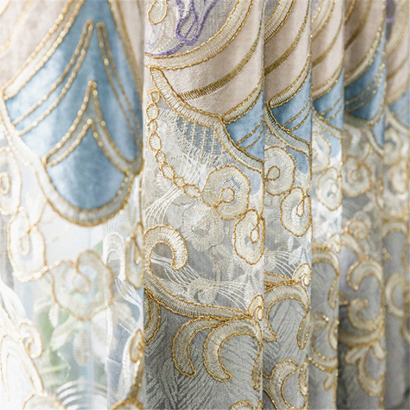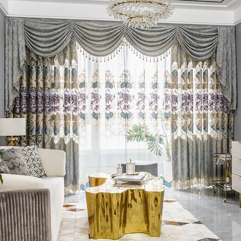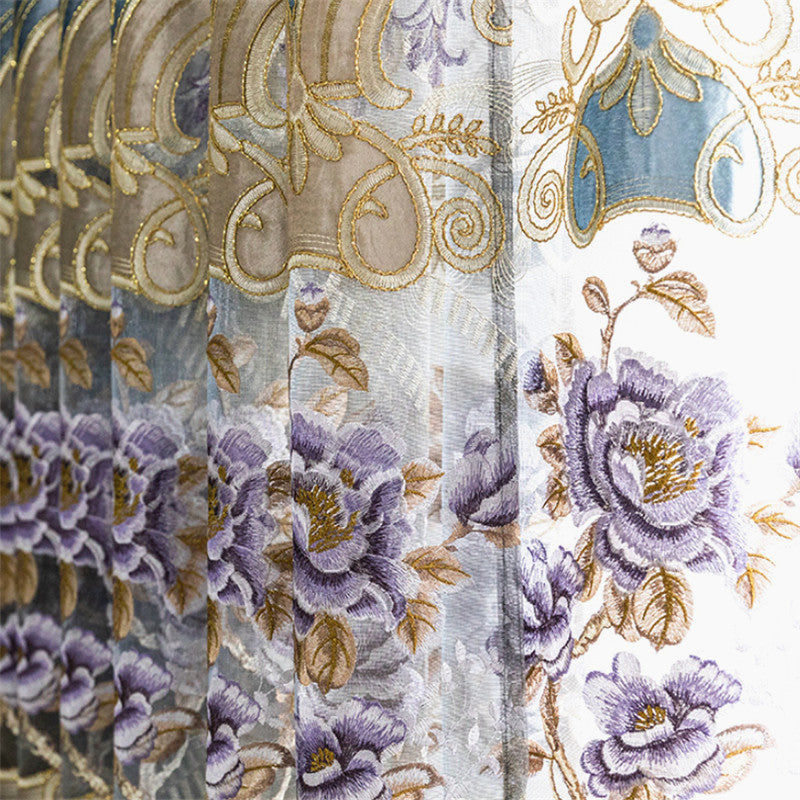 European Elegant Embroidered Flowers High Quality Organza Custom Sheer Curtain for Living Room Bedroom 2 Panels