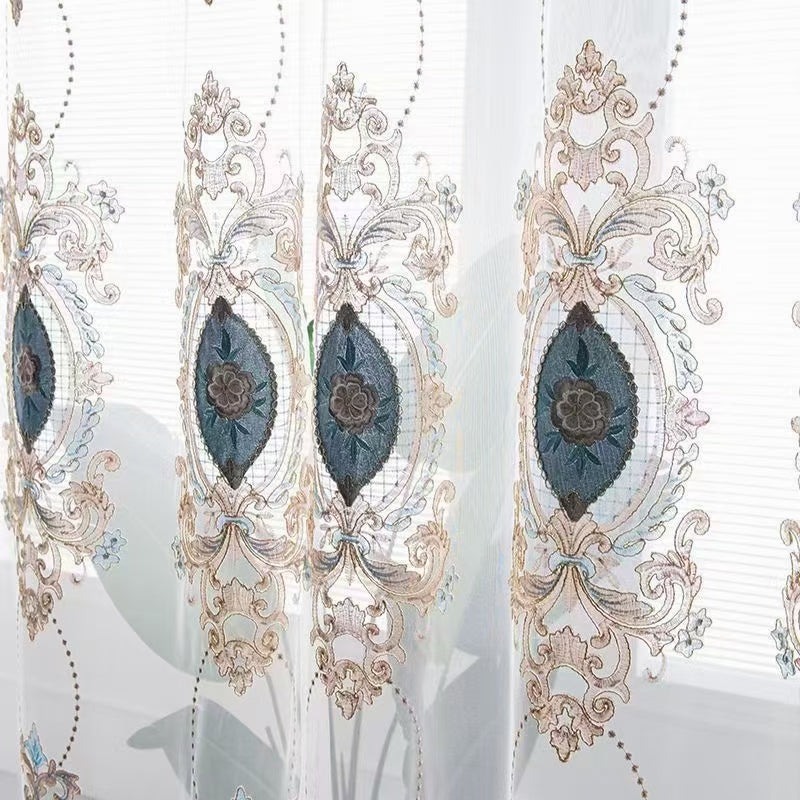 European Embroidery Sheer Curtain Blackout Noble and Elegant for Living Room Bedroom Window Decoration Custom 2 Panels Drapes Breathable Voile Drapes