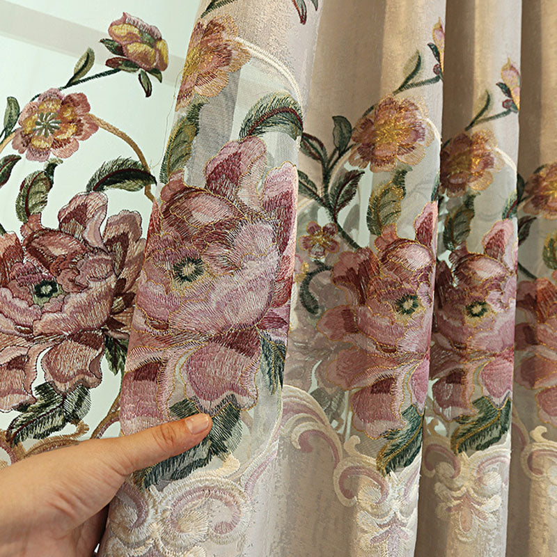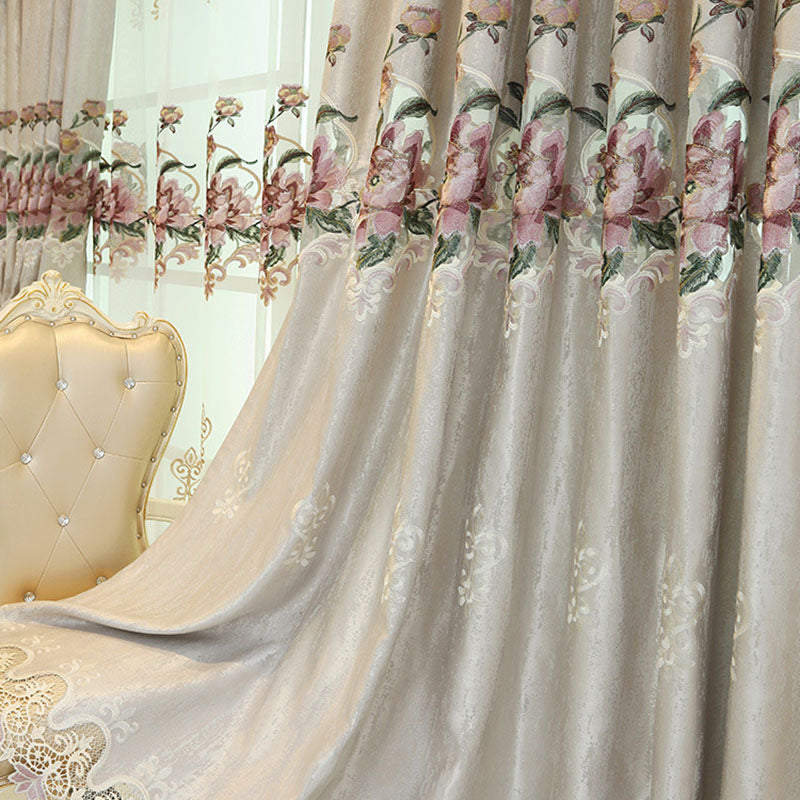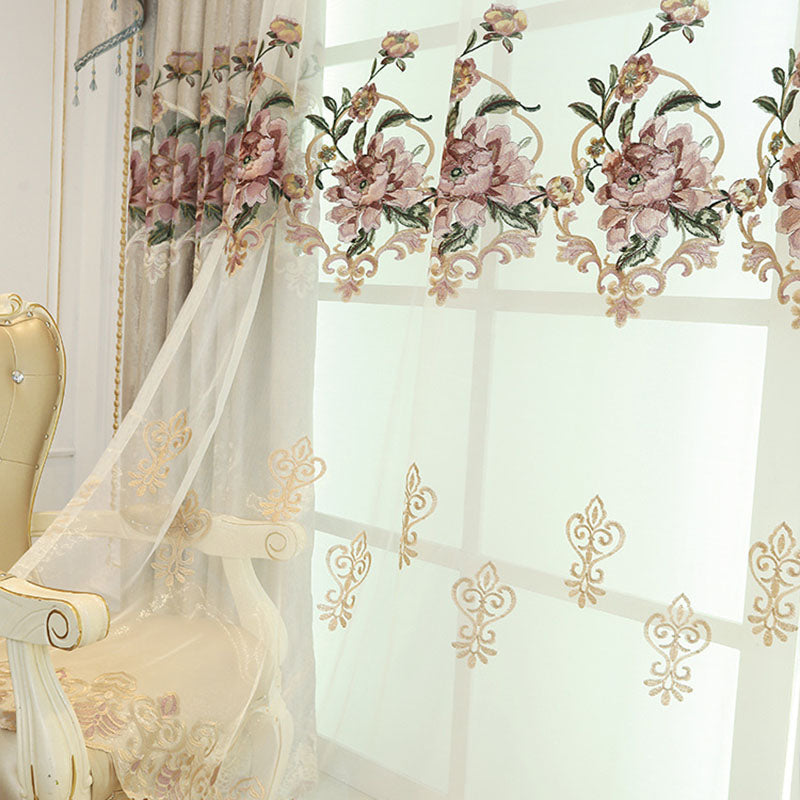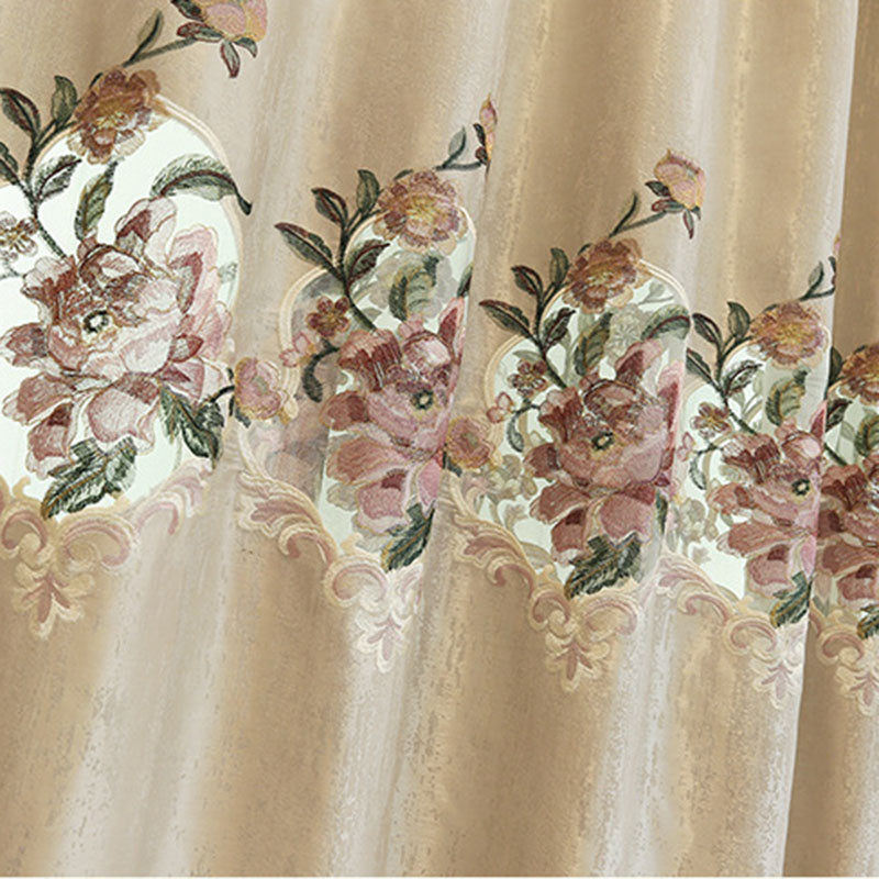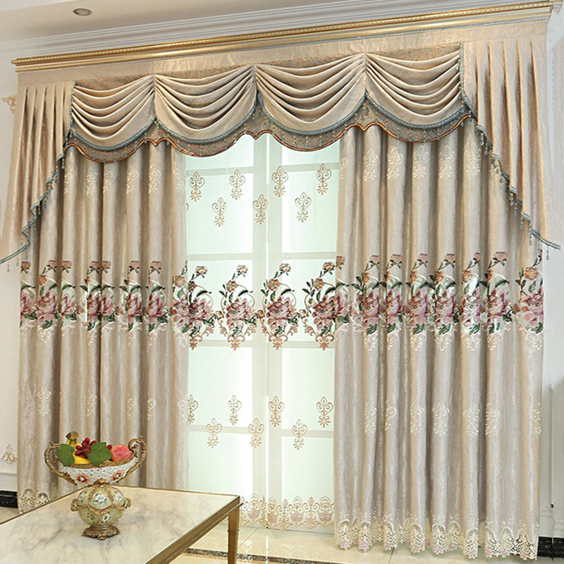 European Floral Blackout Curtains Noble and Elegant Valance Sheer Embroidered Chenille Window Custom Grommet Curtains Living Room Bedroom Decoration