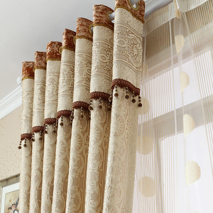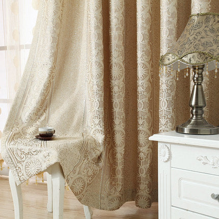 European Style Contemporary Beige Two Panels Custom Sheer Curtains Polyester Net Drapes for Bedding Living Room