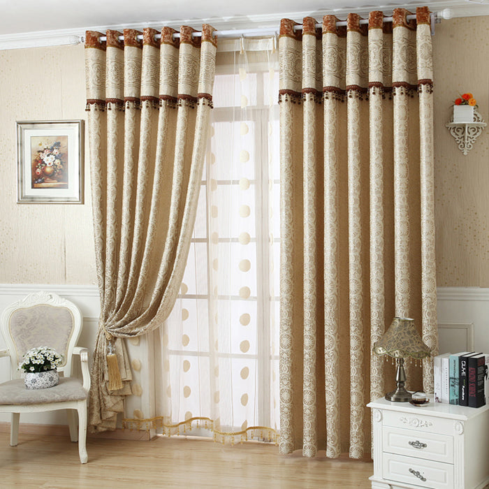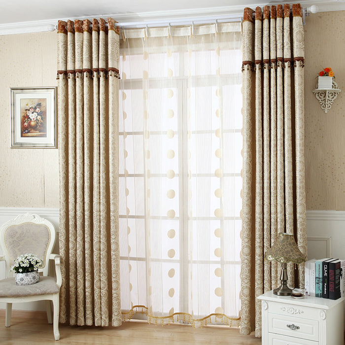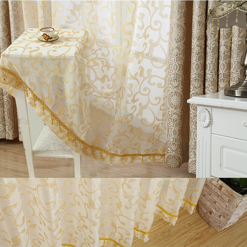 European Style Contemporary Beige Two Panels Custom Sheer Curtains Polyester Net Drapes for Living Room