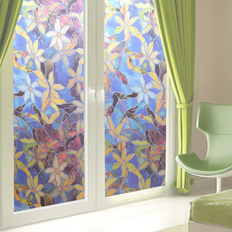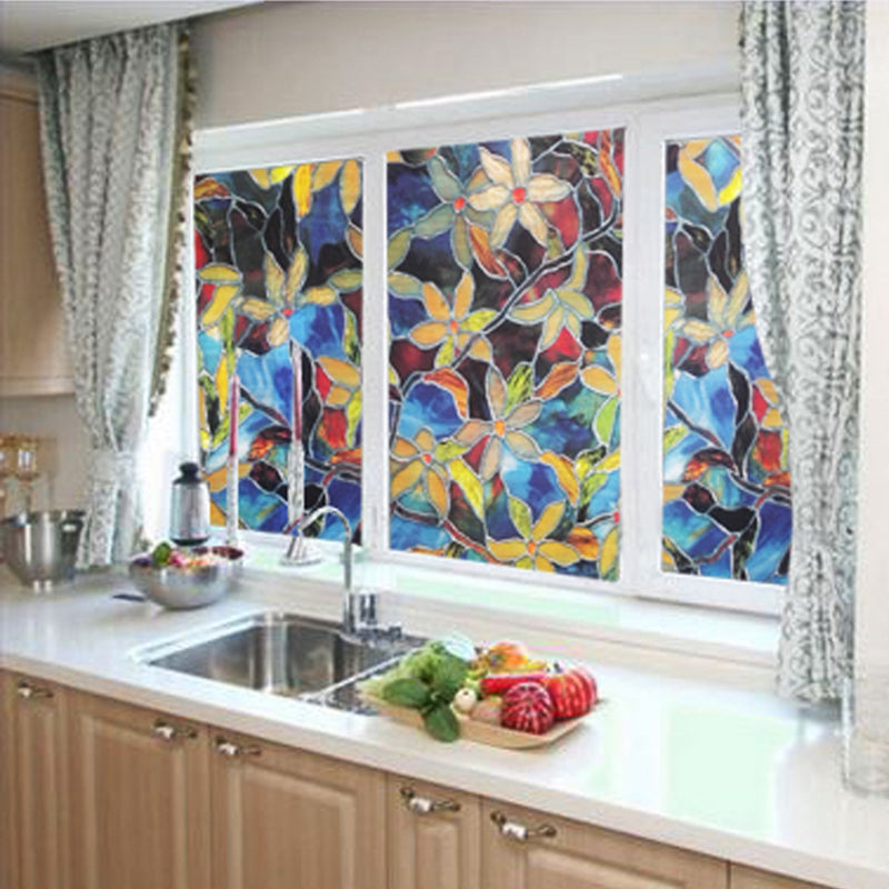 Floral Painting Static Decorative Privacy No Glue Window Films