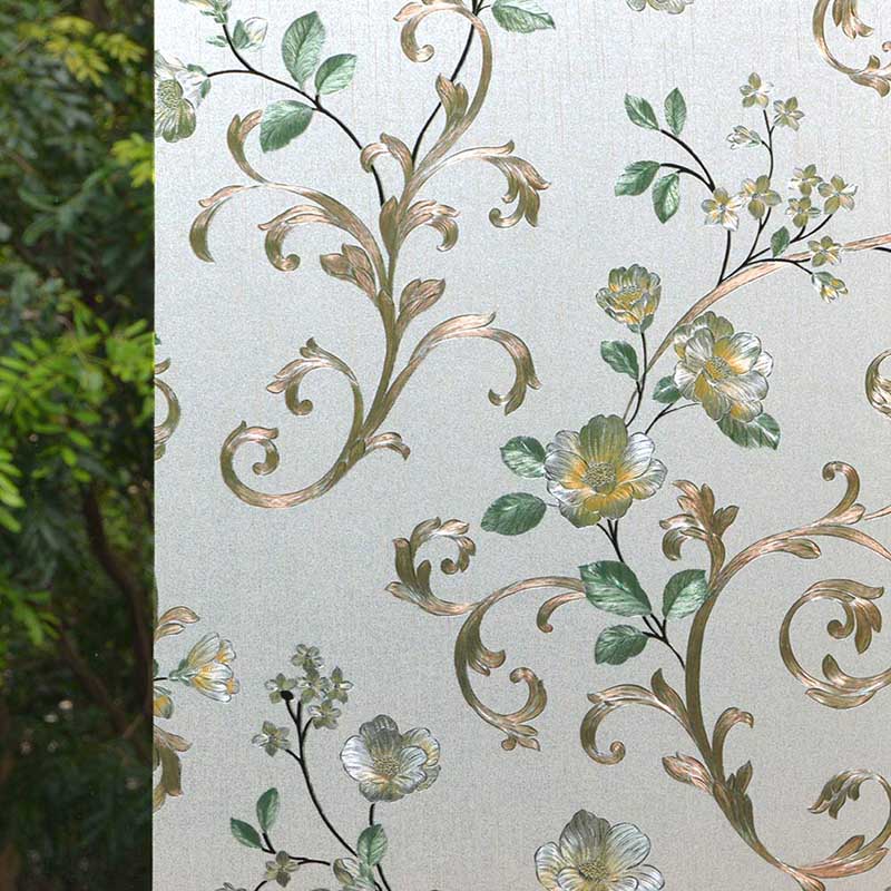 Floral Window Film Stained Glass Self Static Cling for Home