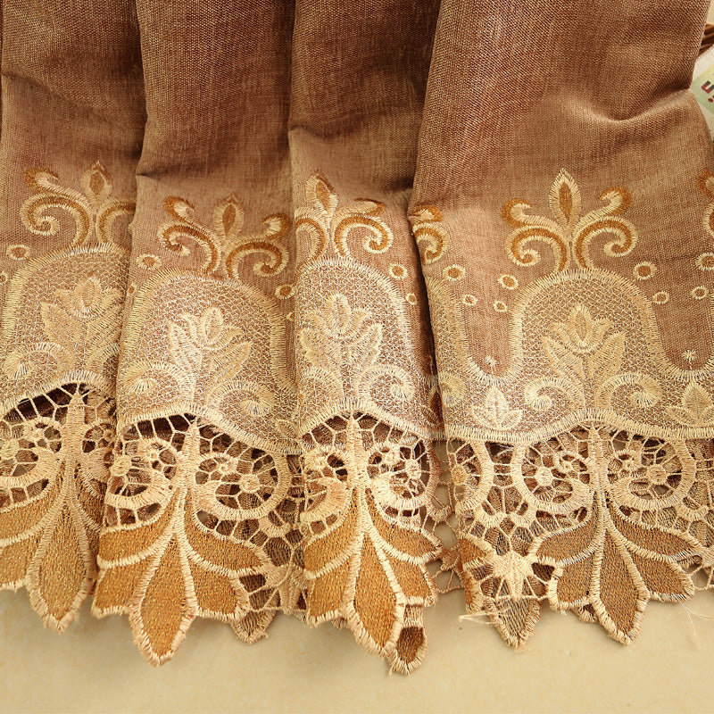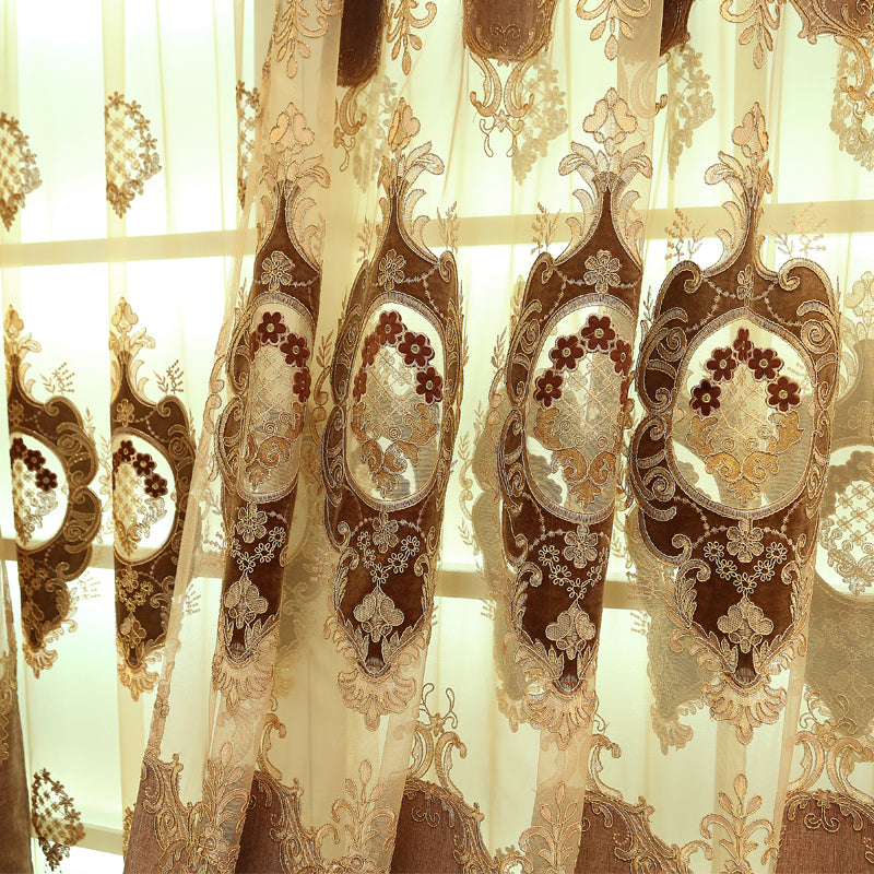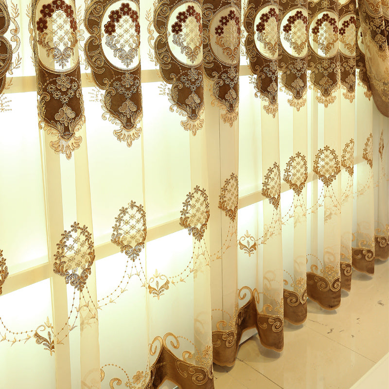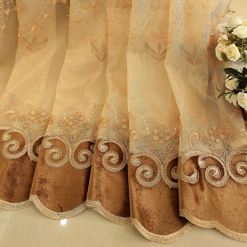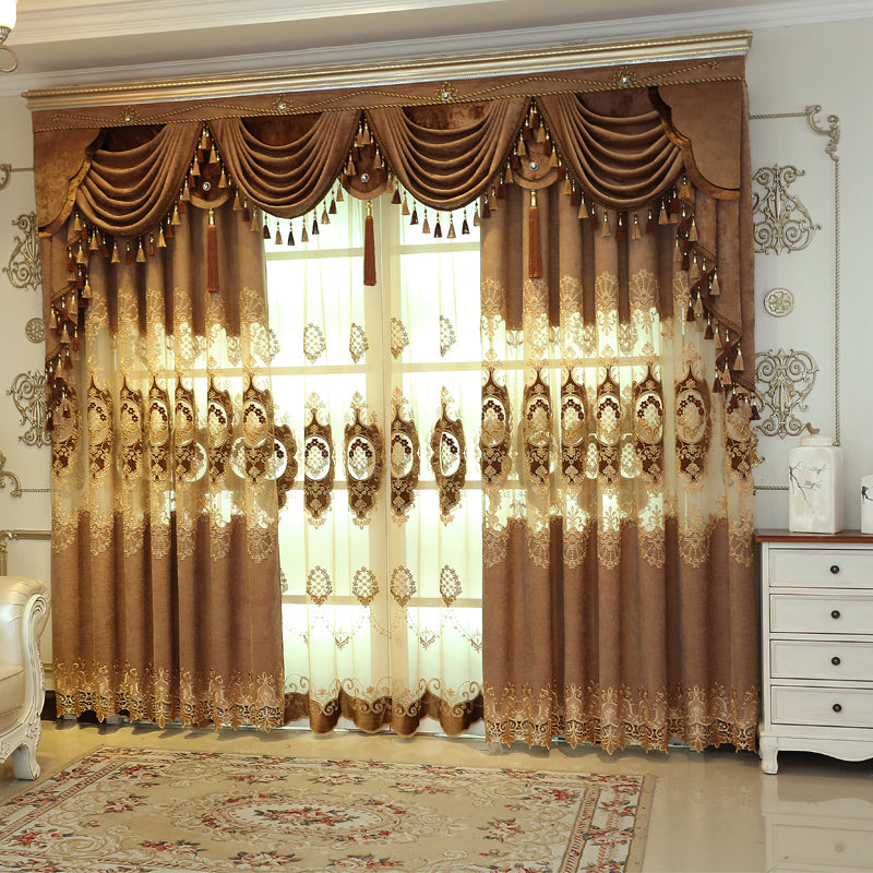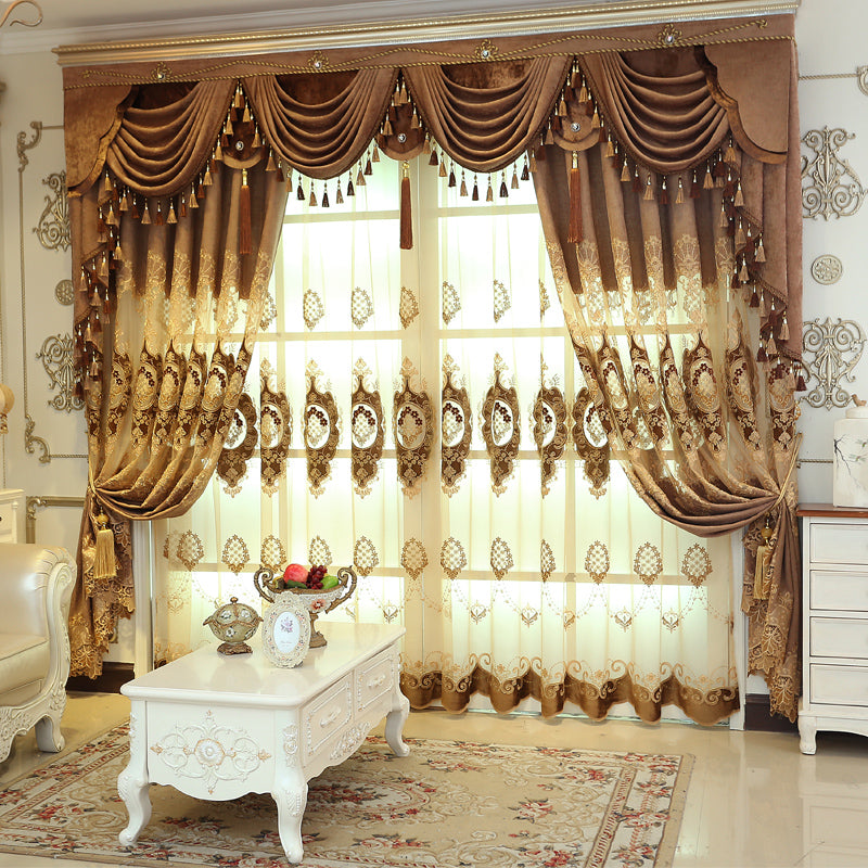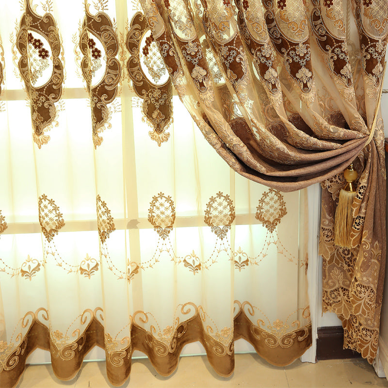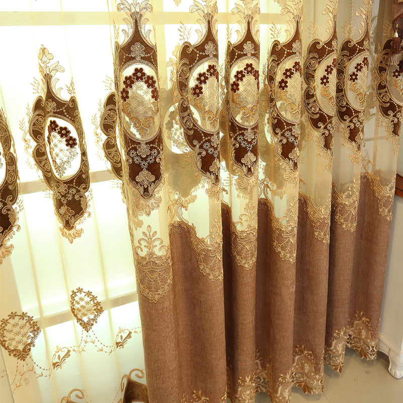 Golden Jacquard Luxury Hollowed Design Exquisite Chenille Valance Shading Curtain Sheer 2 Panels for Living Room Bedroom