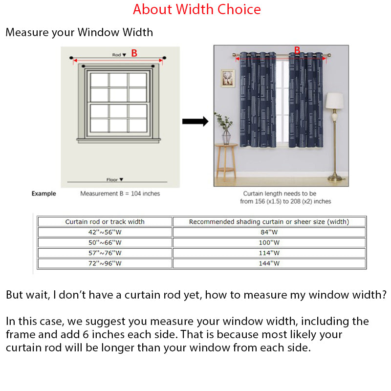 4.We suggest that you choose a curtain width 1.5~2 times wider than the width of the pole or track to create folds.