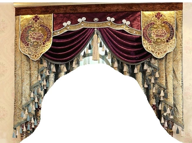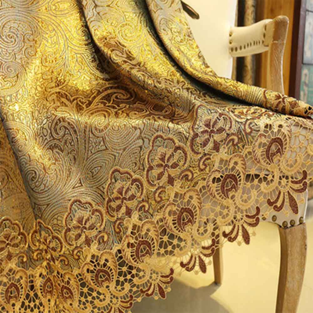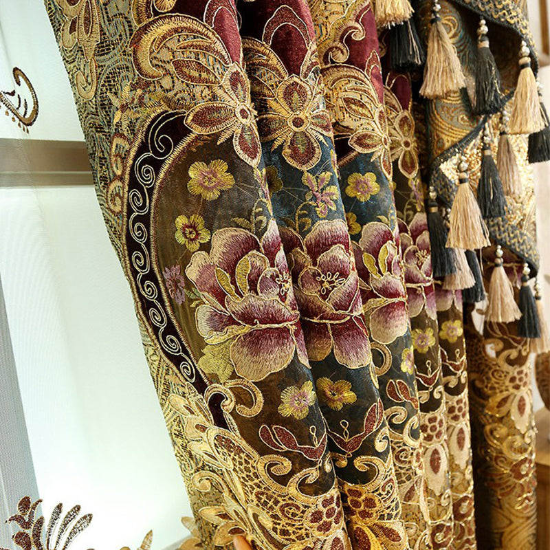 Gorgeous Luxury Golden Embroidered Shading Cloth 2 Panels Decorative Blackout Curtain Drapes Valance