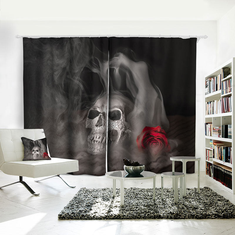 Halloween 3D Shading Cloth Gray Blackout Curtains Skull Printed Water-proof and Dust-proof Custom Curtain for Living Room Bedroom Window Decoration