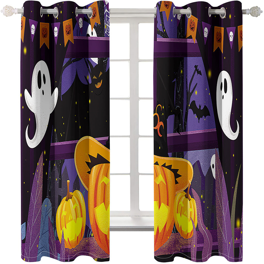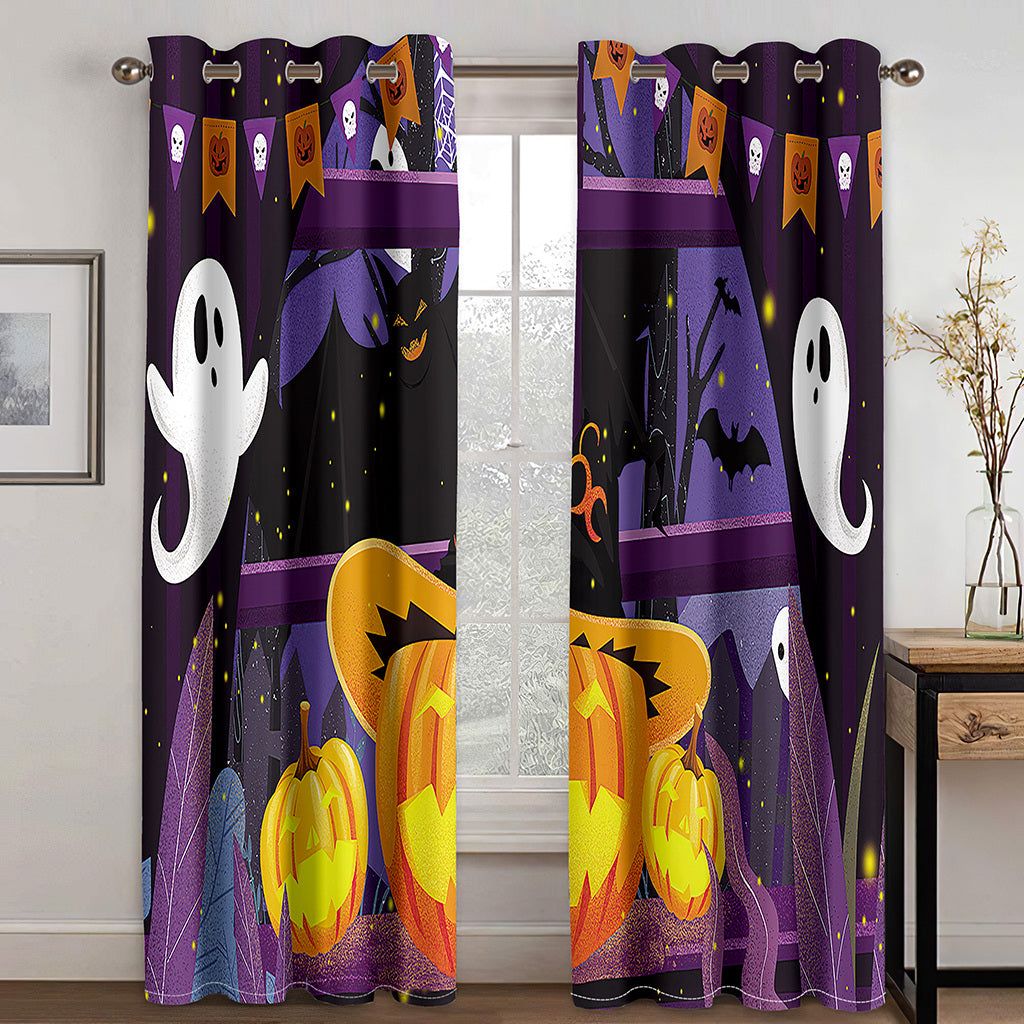 Halloween Pumkin 3D Printed Curtains Blackout Decoration Window Shading Curtain Custom 2 Panels Drapes