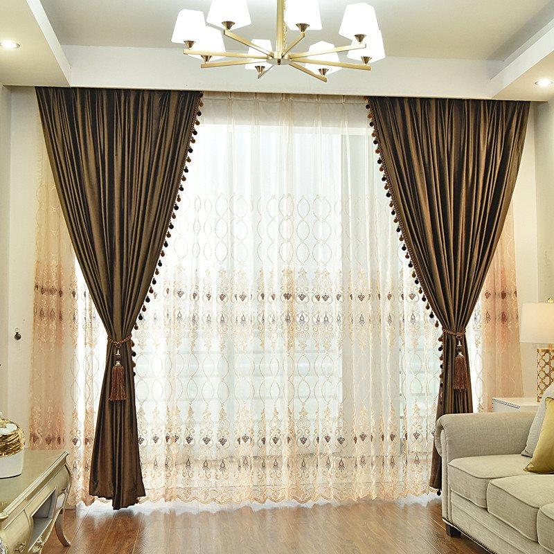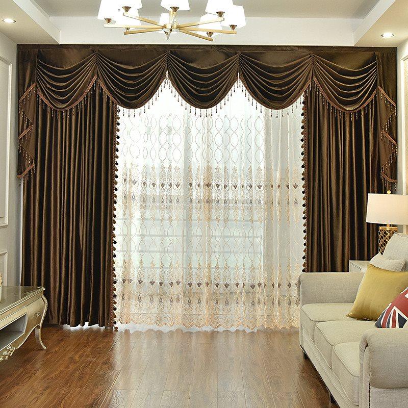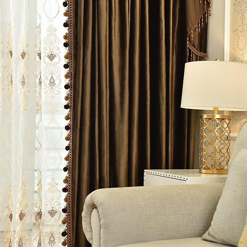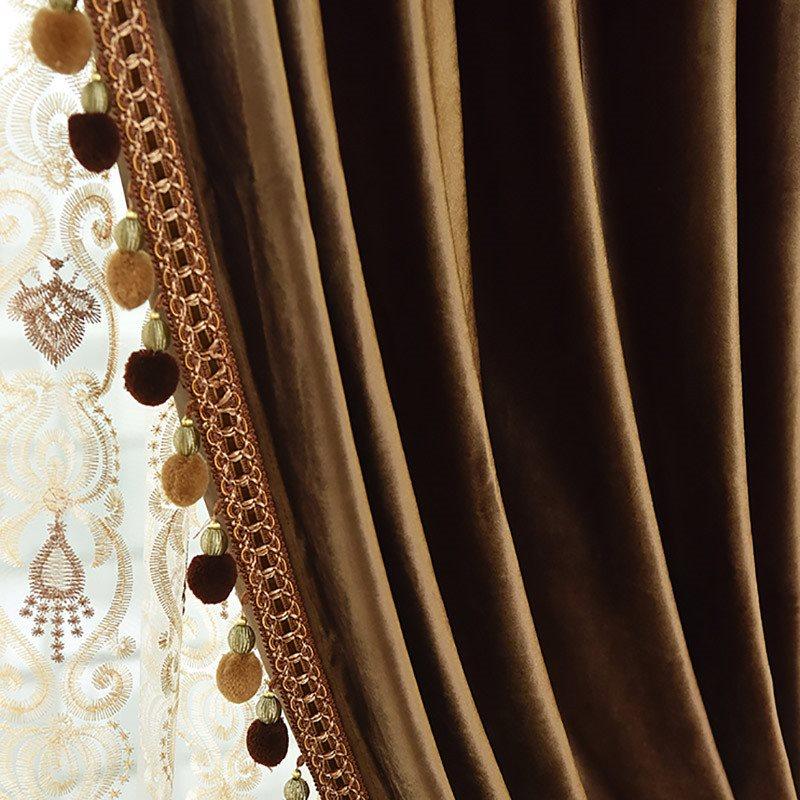 Luxury Velvet Custom Blackout Curtains Solid Color Coffee Window Curtains Prevents UV Ray Excellent Performance on Darkening for Bedroom Living Room