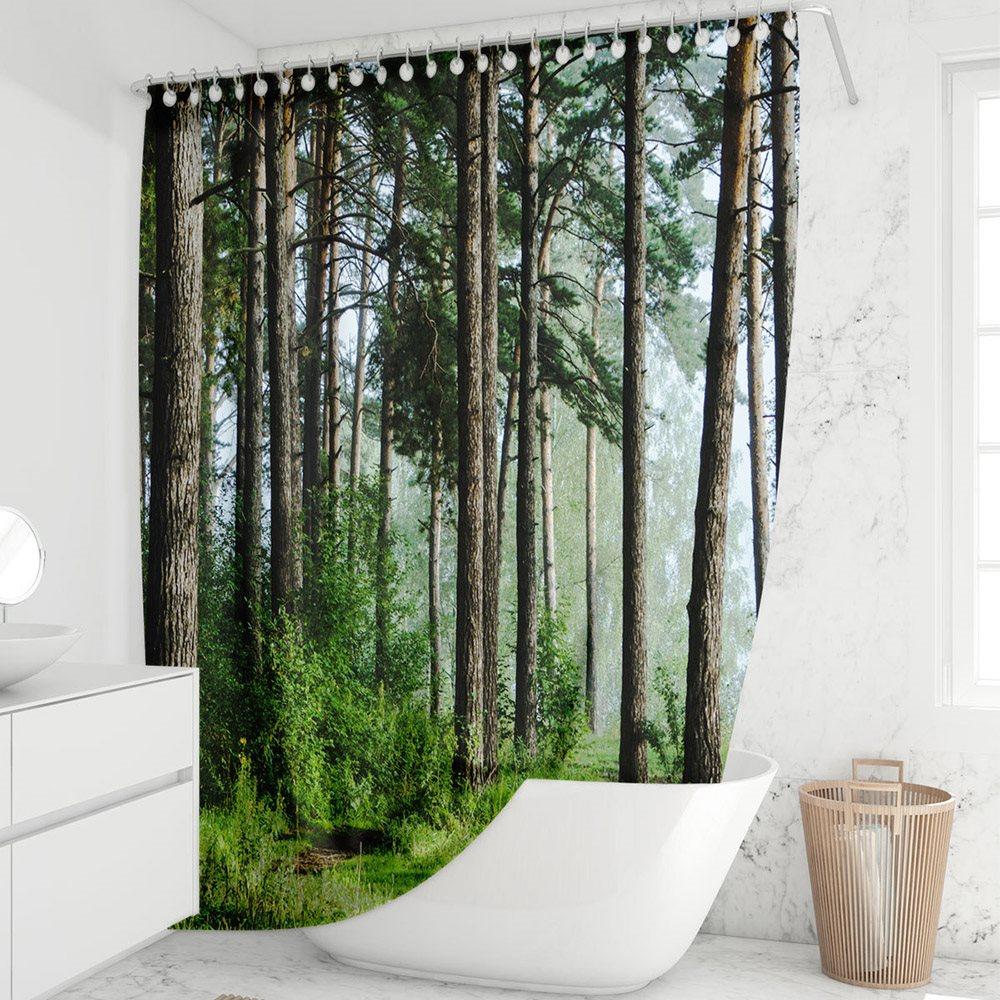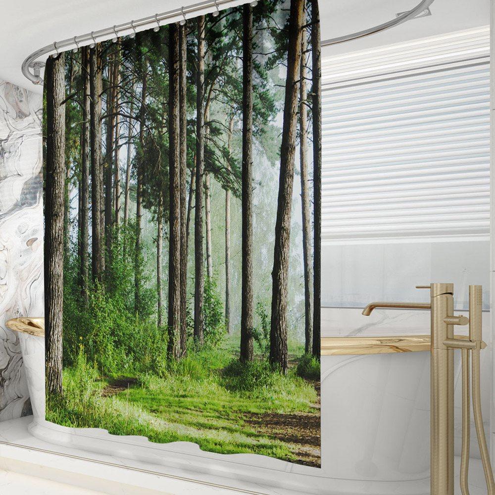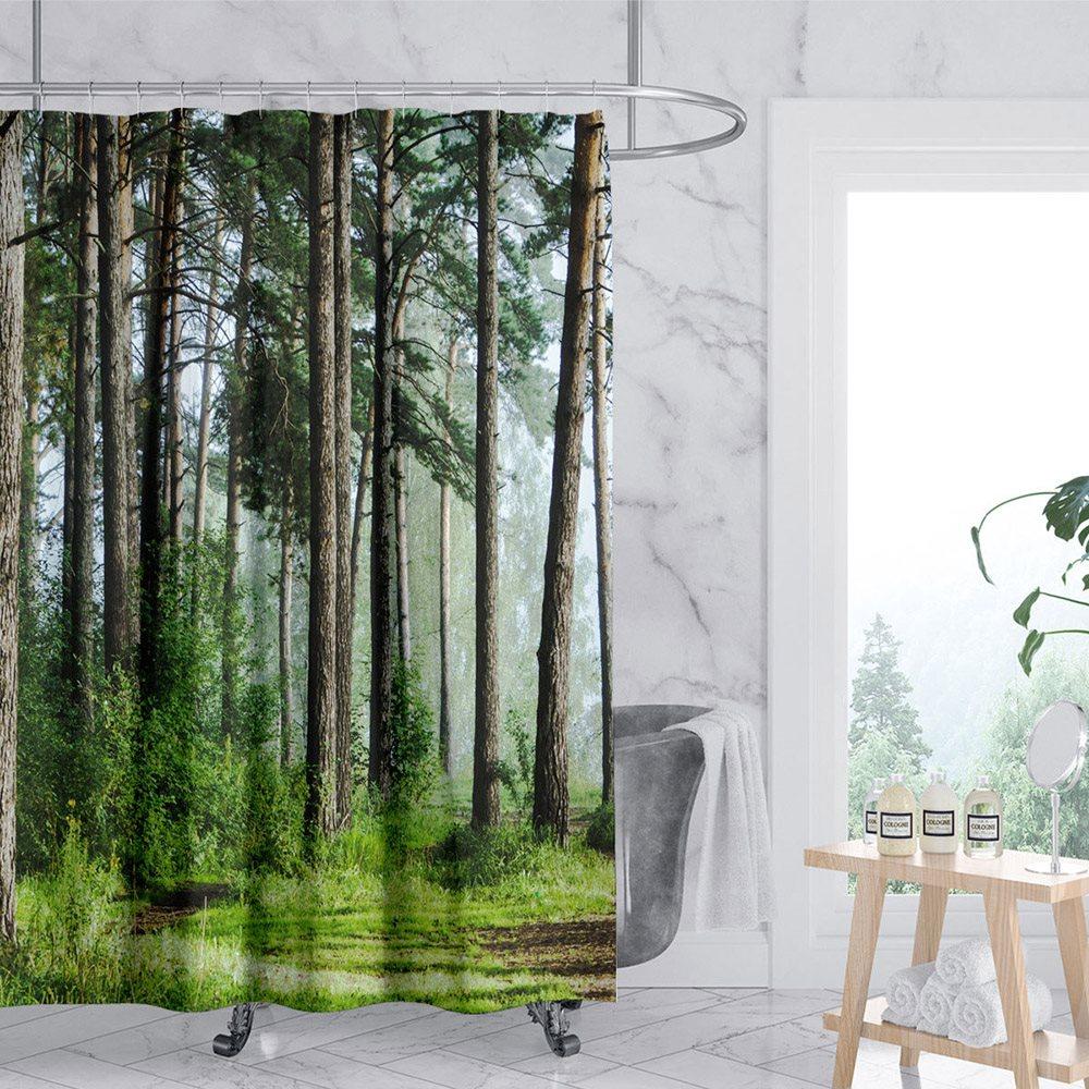 Modern 3D Printed Forest Shower Curtain Waterproof and Mildewproof Polyester