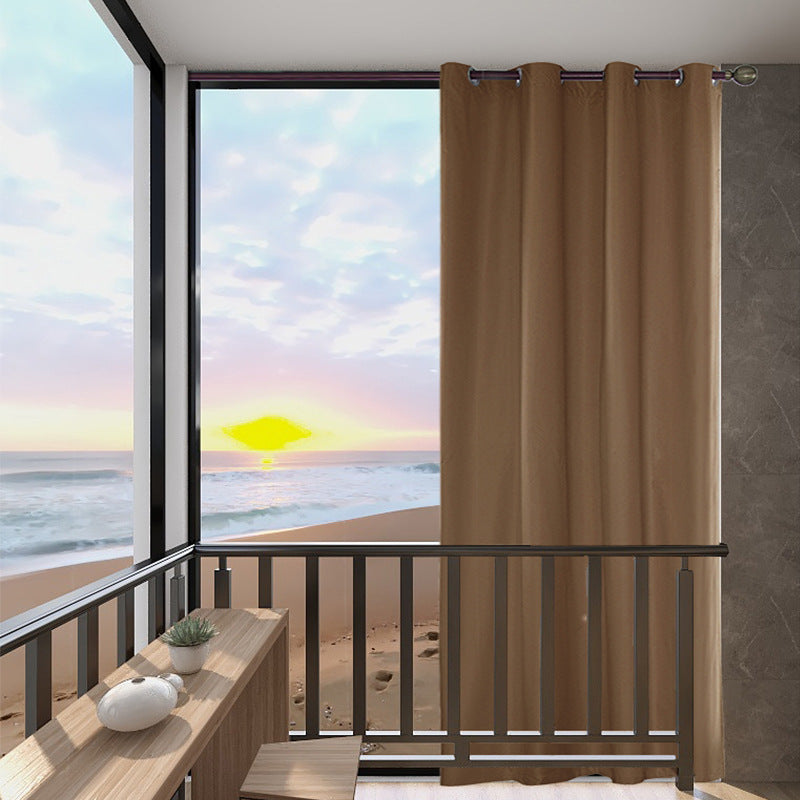 Modern Brown Outdoor Curtains Cabana Grommet Top Curtain Waterproof Sun-proof Heat-insulating 1 Panel