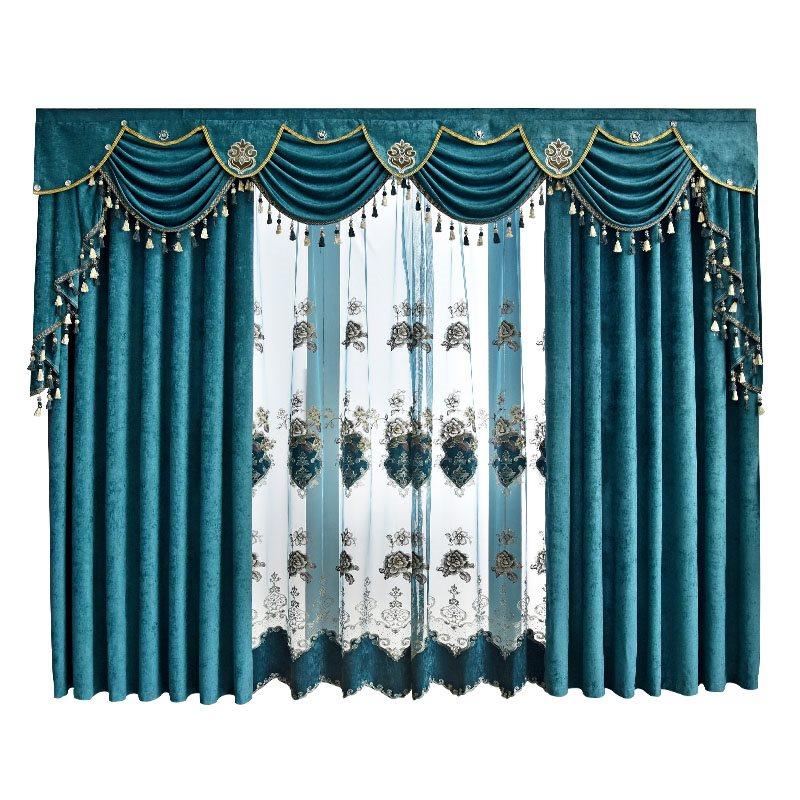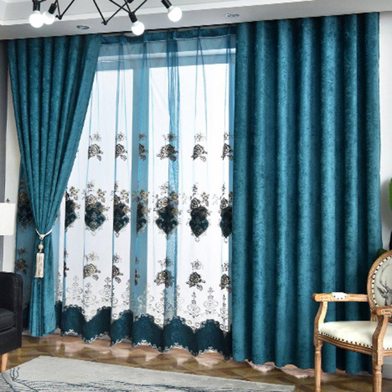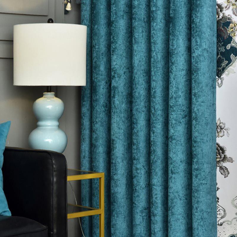 Modern Simple Window Curtains Chenille Blue Blackout Curtains for Living Room Bedroom Darkening Custom 2 Panels Drapes