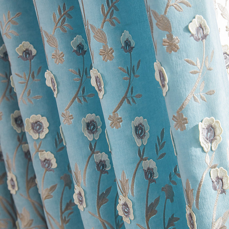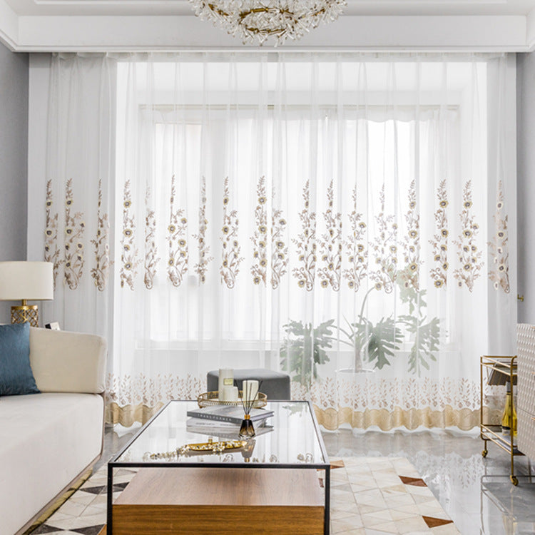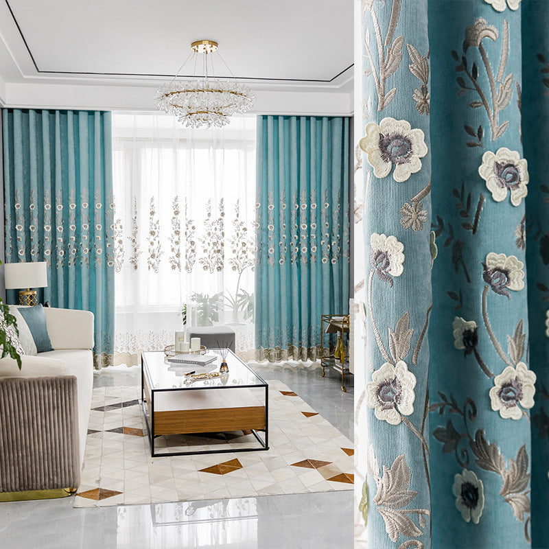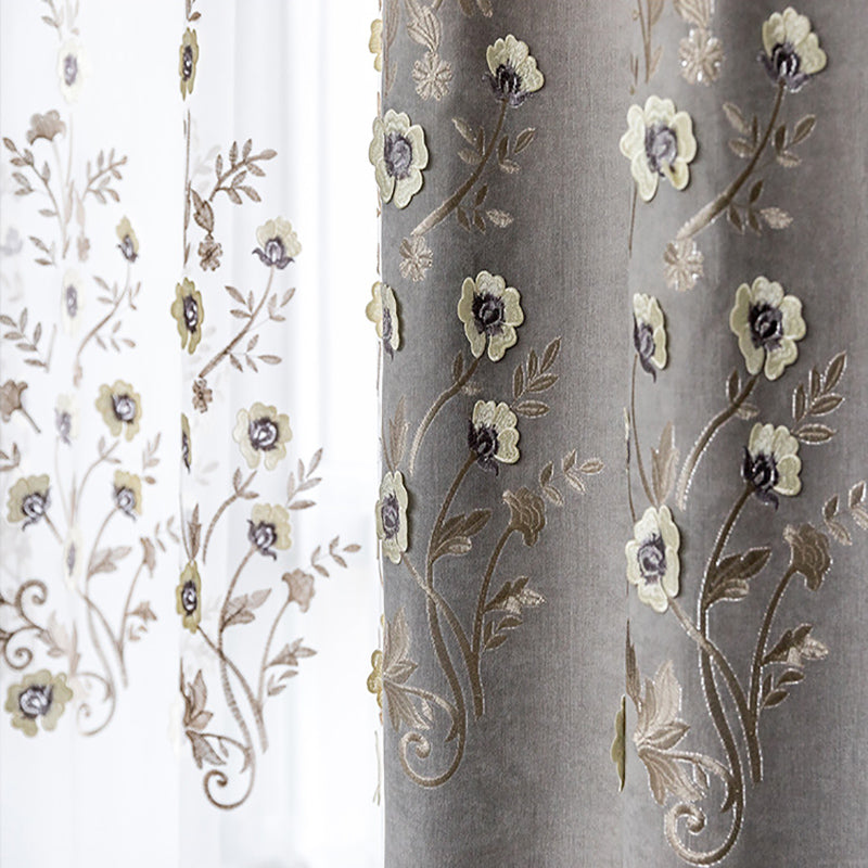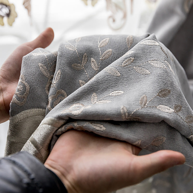 New European Elegant Floral Embroidery Embossed Wheat Ears Shading Curtains Warm Hollow Curtains for Living Room Bedroom Decoration Custom 2 Panels Drapes Linen Blend
