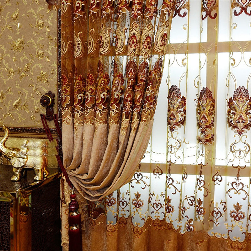 OverviewCurtain in brown with hollowed-out design and classical embroidered pattern would add more elegance to your life. This curtain can match most European style curtains very well. Its easy to install to wash and also can be used for a long time without harmful smell. Its quality has successfully passed by QA.