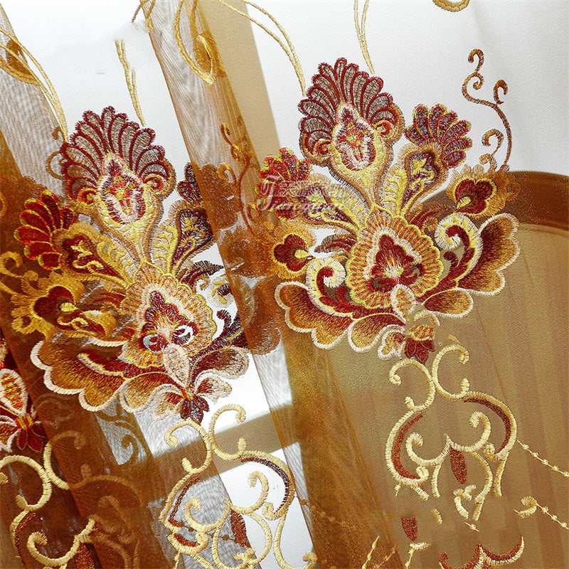 Noble and Elegant Embroidered Flowers 2 Panels Custom Living Room Sheer Curtain