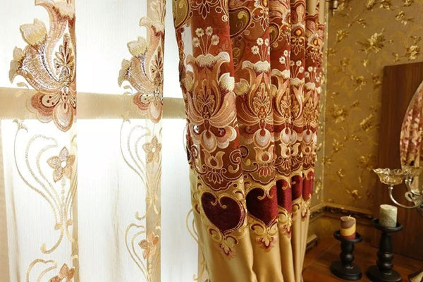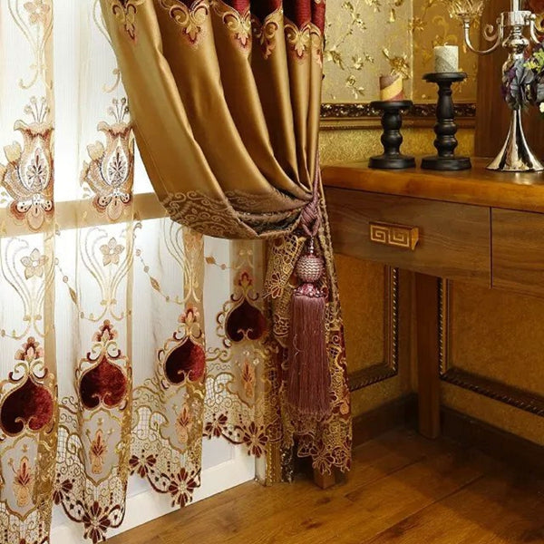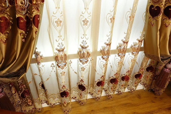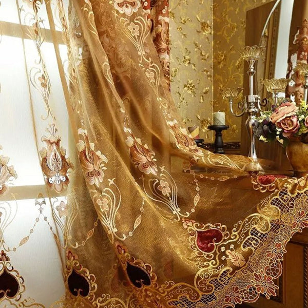 Noble Luxury Tulle Golden Embroidery Sheer Curtain Blackout for Living Room Bedroom Window Decor Custom 2 Panels Drapes Breathable Voile