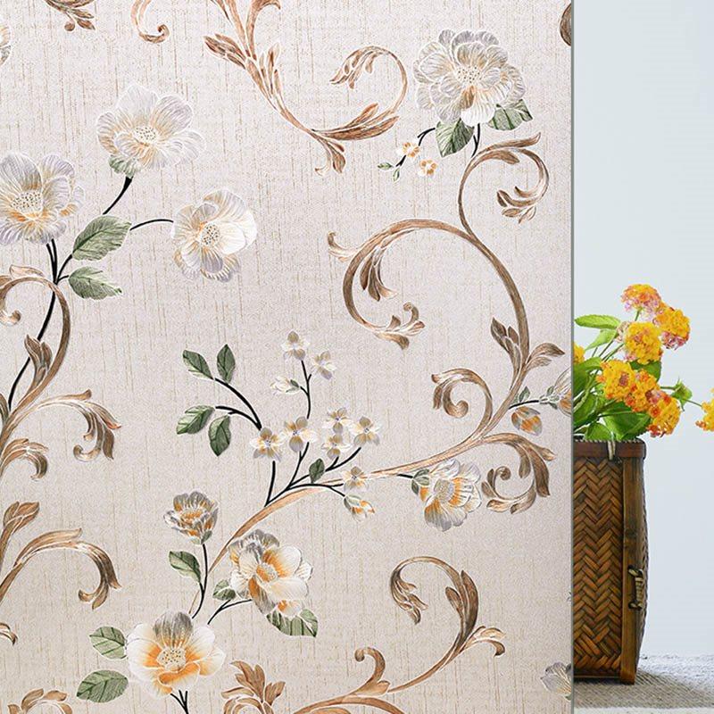 BrightenupyourhomewithWindowFilmNice privacy protection blurs unwanted views, artistic floral pattern decorates your place, static cling to the surface without glue for extra safety and convenience, simple peel-and-stick installation, easy to remove and re-apply for multiple