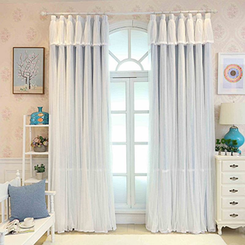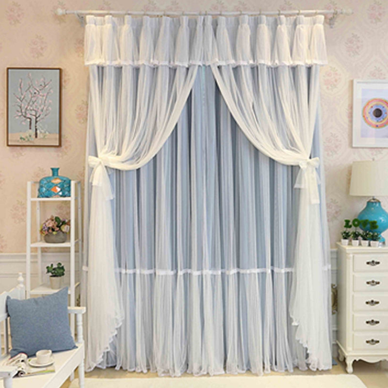Princess Style Blue Sheer and Cloth Sewing Together Blackout Custom Curtain