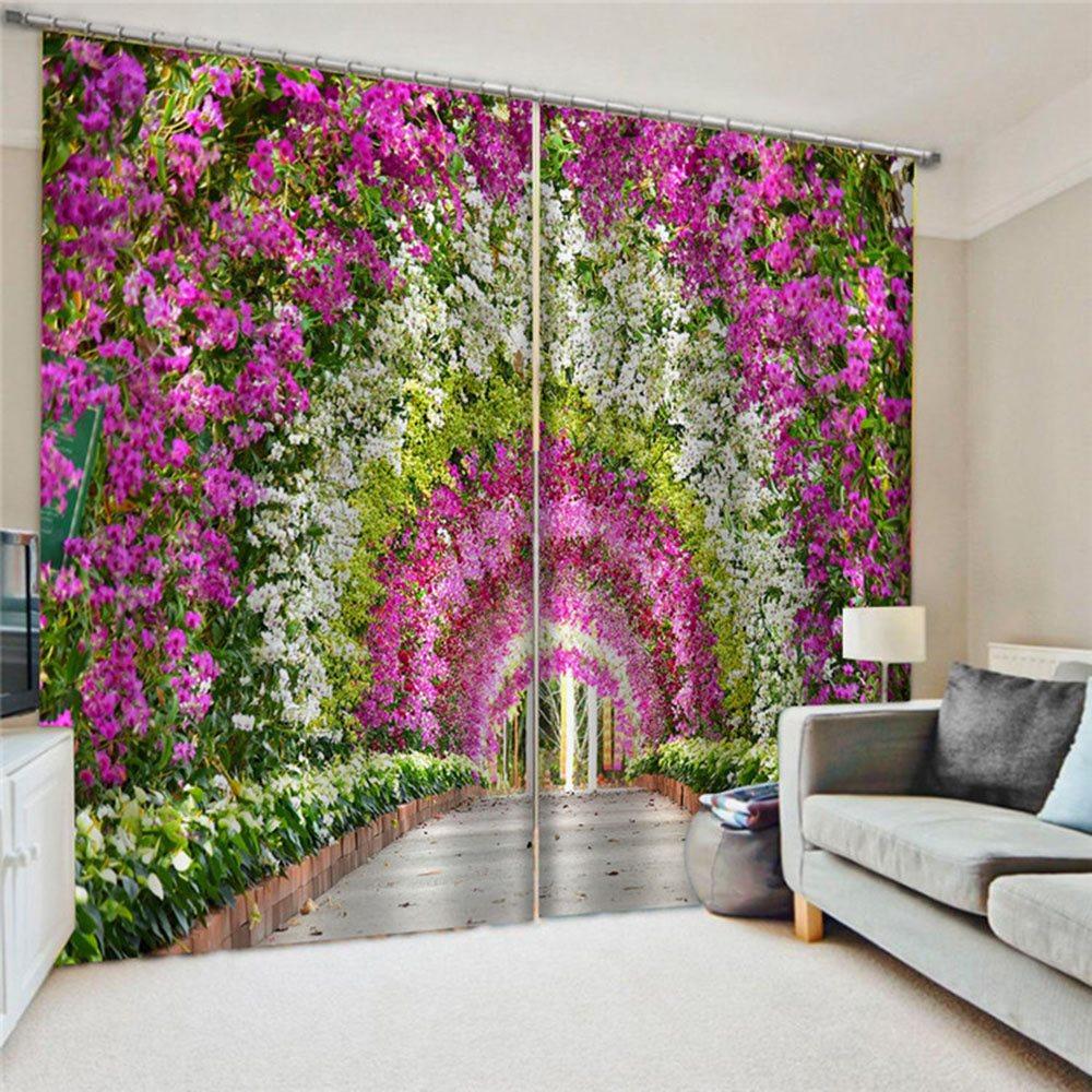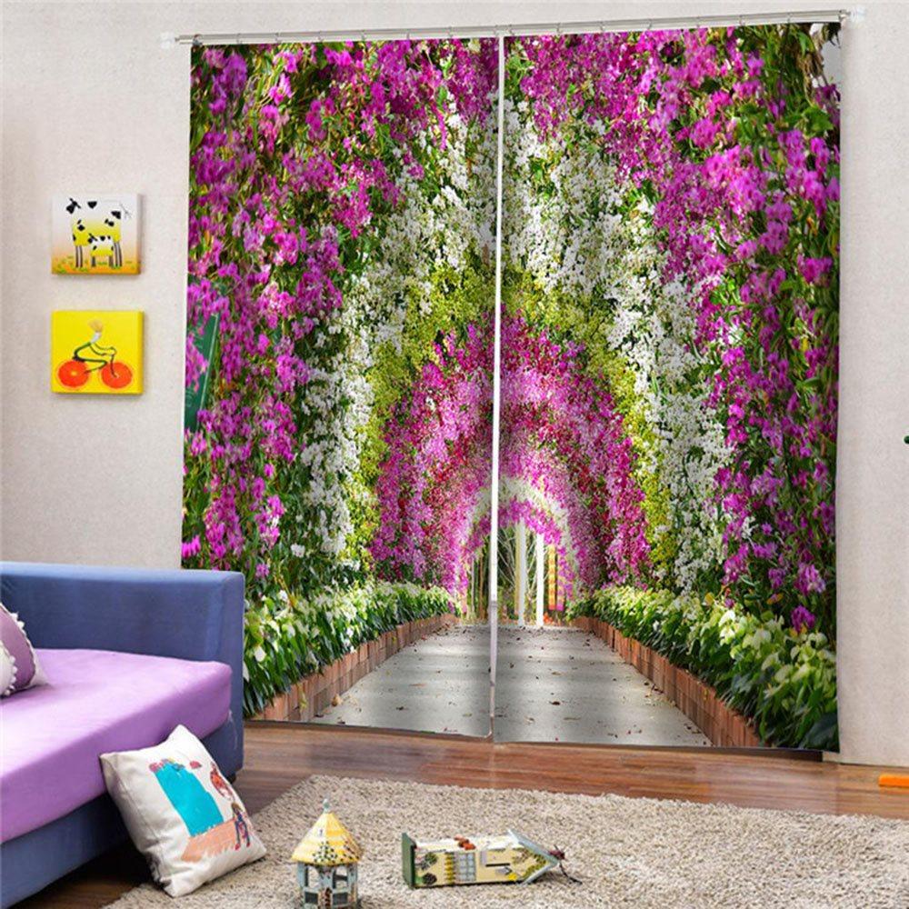 Print Flowers Background 3D Blackout Curtains Decoration 2 Panels Drapes for Living Room Bedroom No Pilling No Fading No off-lining Polyester