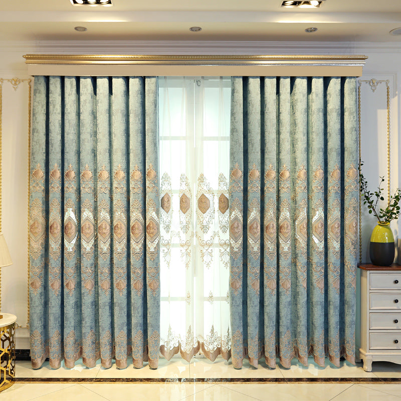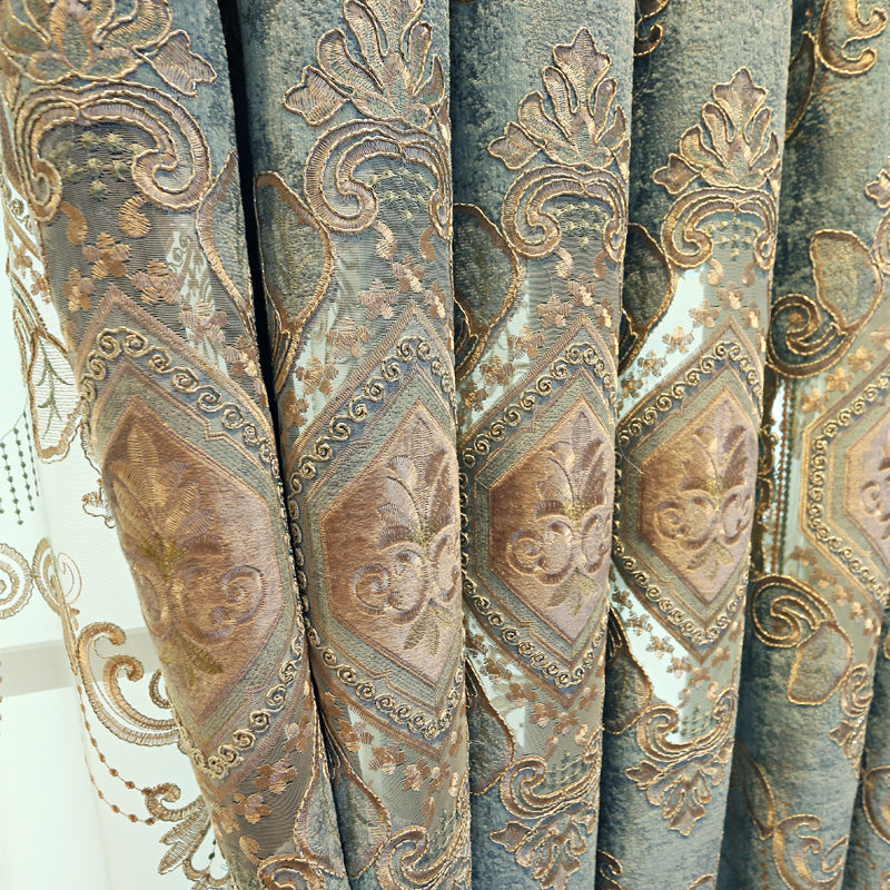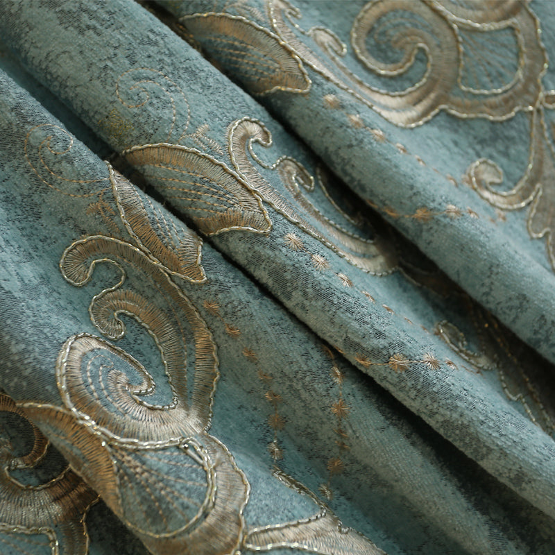 Vintage Black Out Embroidery Teal Curtains for Living Room Bedroom Window with Classy Durable Chenille Physically Blocks Light Nicely Prevents UV Ray Excellent Performance on Room Darkening