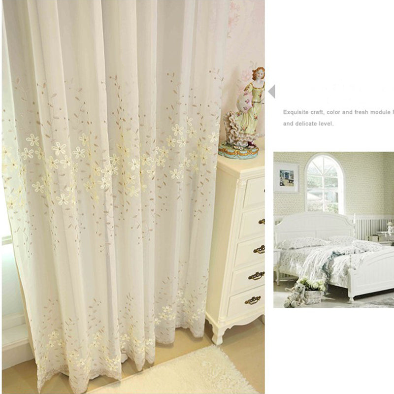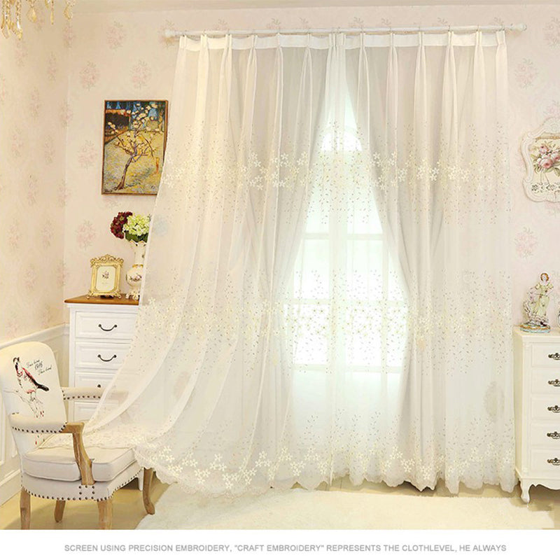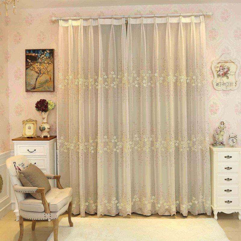 Window Curtains Rustic Floral Embroidery Sheer and Beige Shading Cloth Sewing Together Curtain Sets