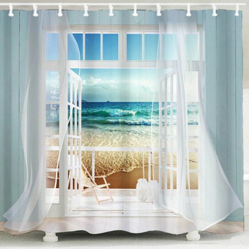 Window Frame Ocean Scene 3D Printing Shower Curtain